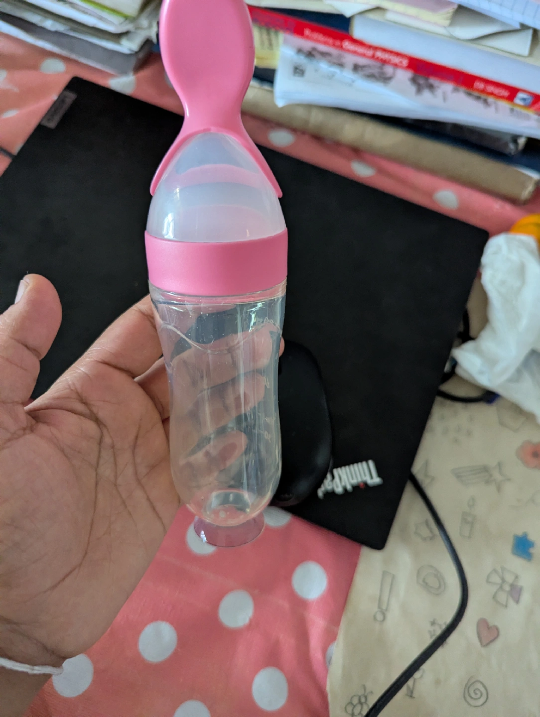 Selling a Munchkin Squeeze Spoon Dispensing Baby Food Bottle. It's in great condition and perfect for feeding your little one on the go! Easy to use and clean, this bottle makes mealtime a breeze