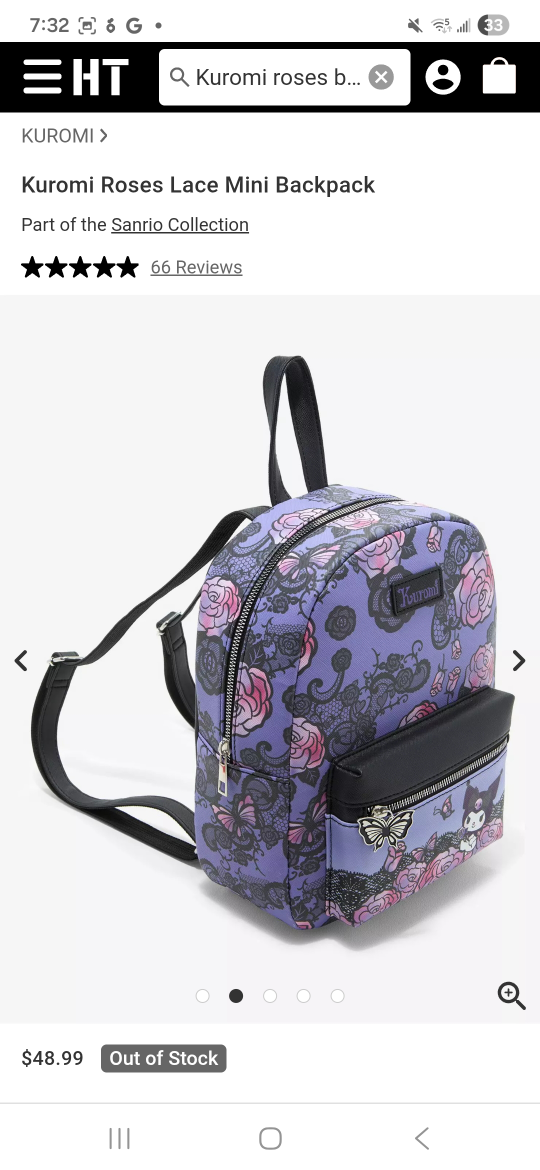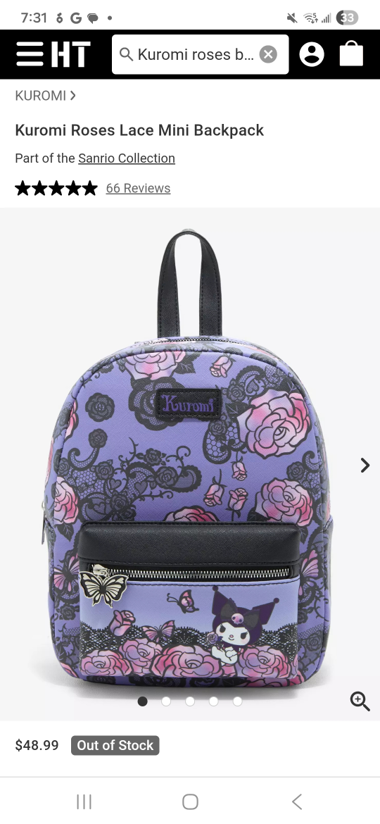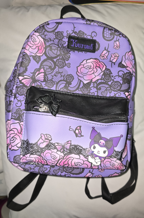 Super cute Kuromi Mini Backpack! It's in like new condition and features a lovely design with roses, butterflies and lace. Perfect for carrying your essentials in style!