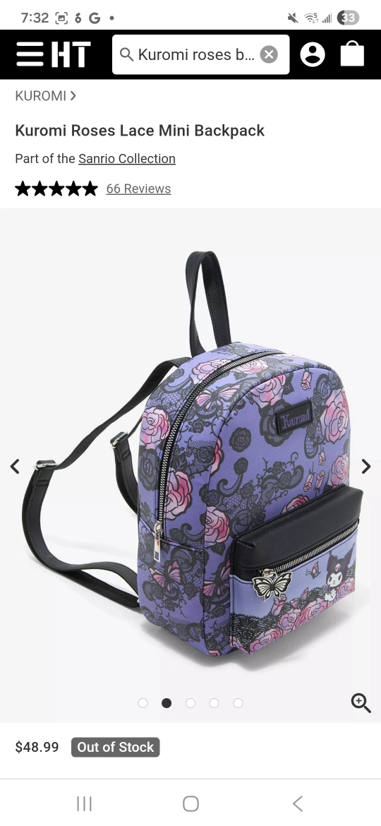 PURPLE Kuromi Roses Lace Mini Backpack