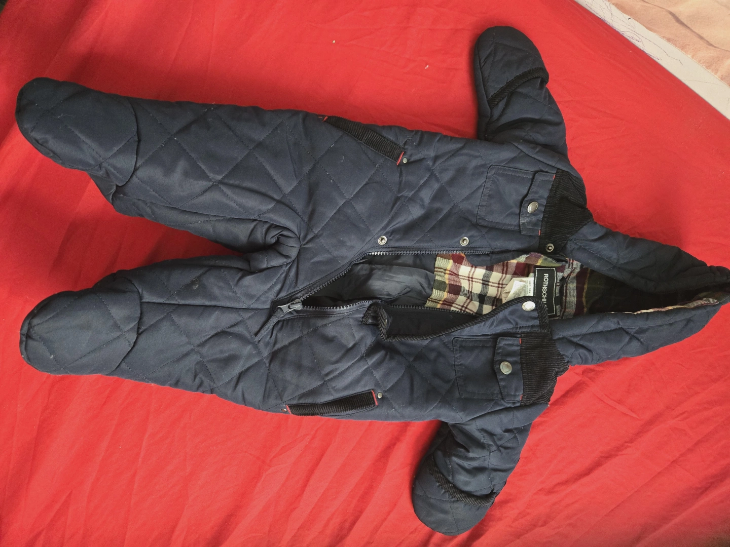 Keep your little one warm with this Rothschild baby snowsuit! It's size 3/6M and made with a shell of 100% polyester and a body lining of 100% cotton