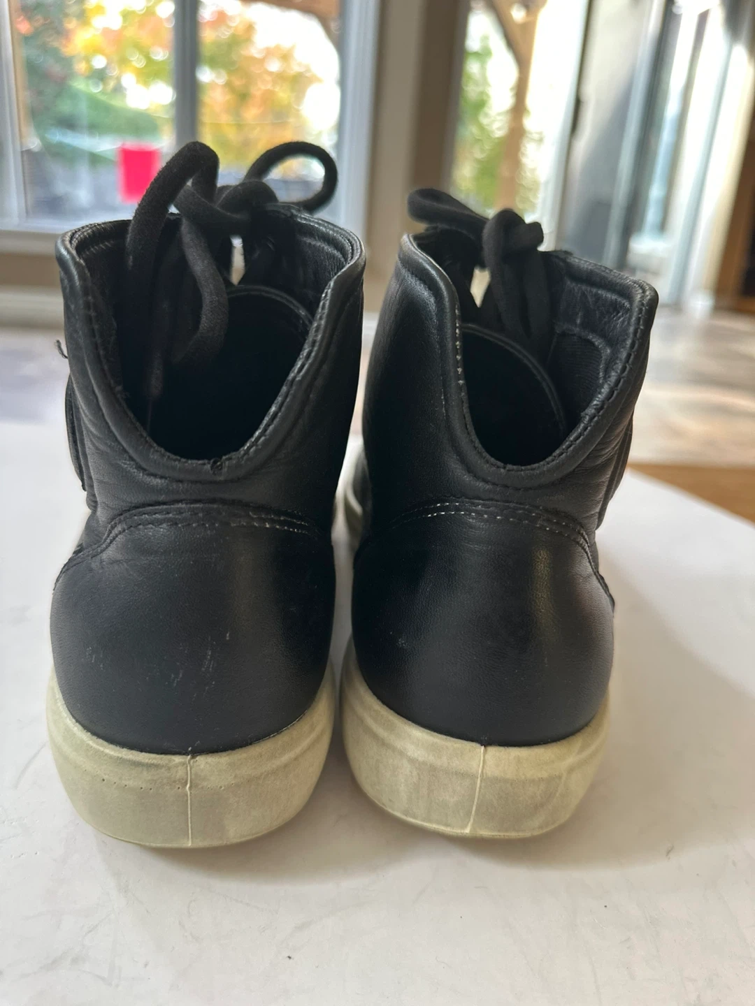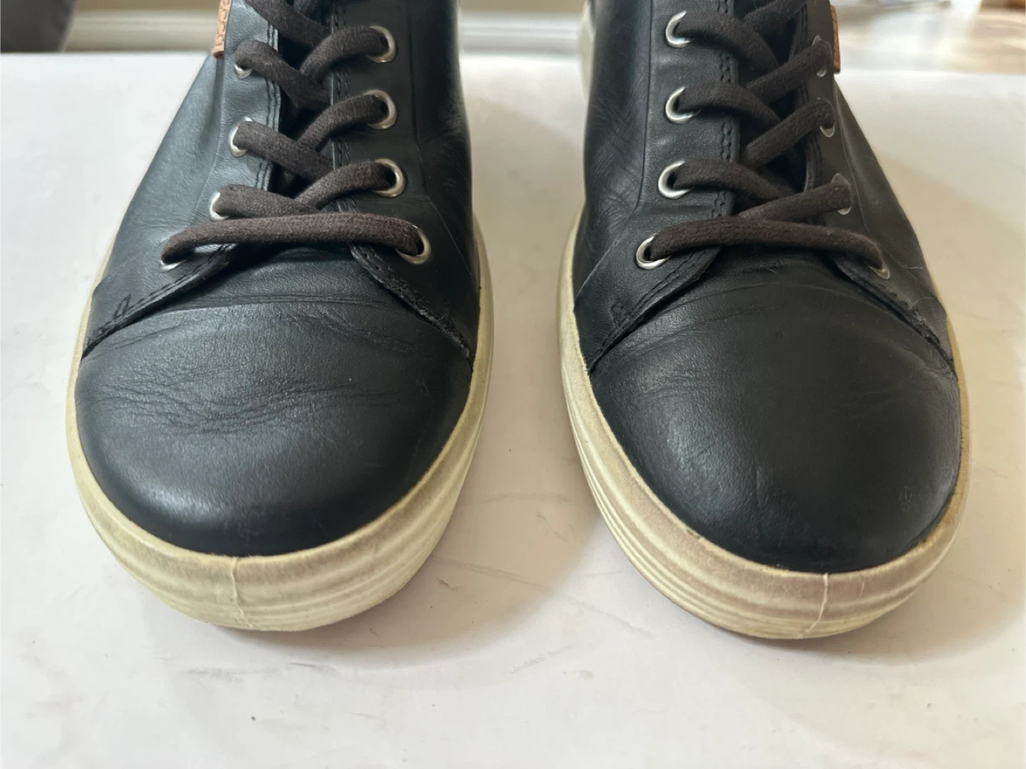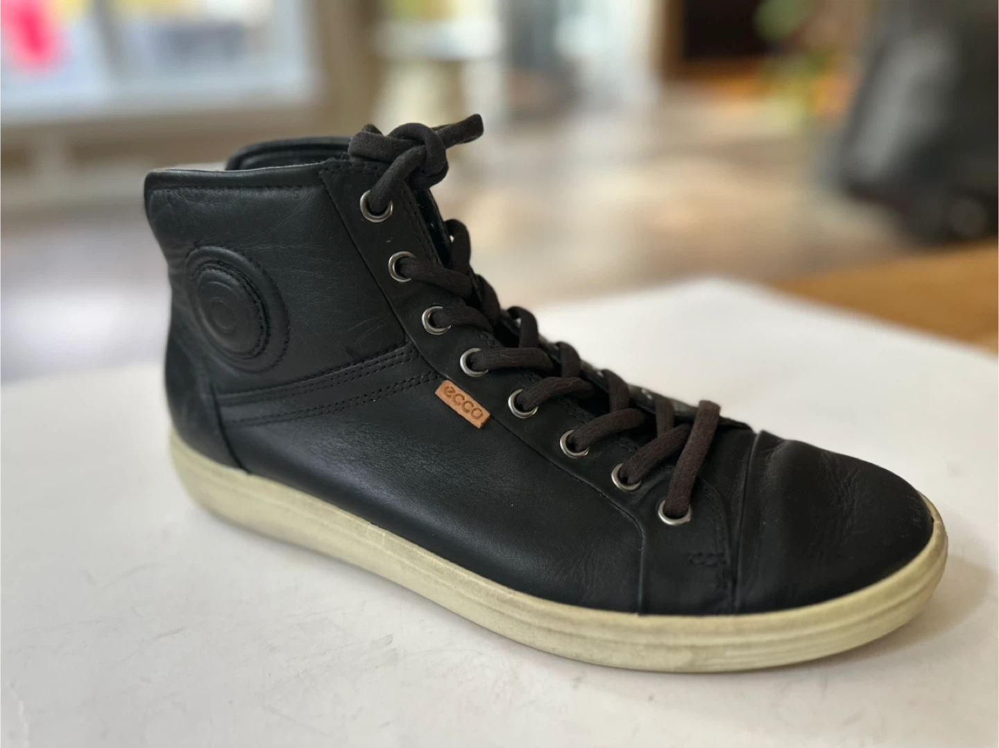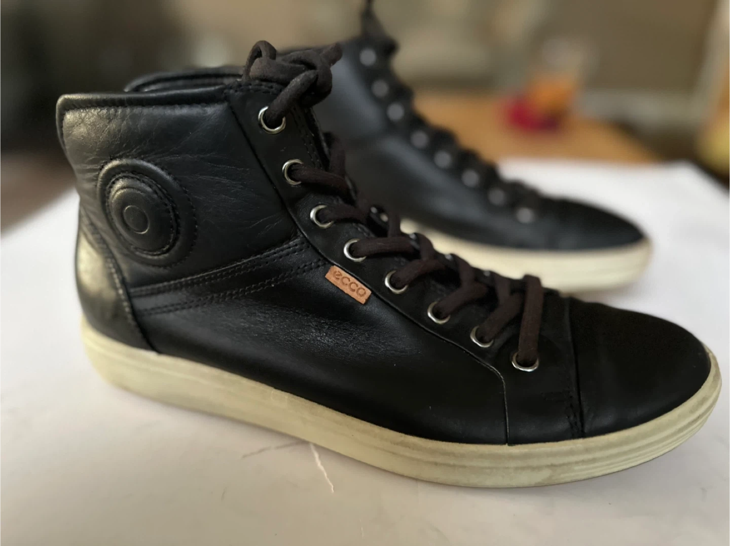65ECCO high-top women’s fashion sneakers in black leather. In excellent preloved condition. Size EUR 41/ US 10-10.5 These shoes have been meticulously cleaned and sanitized. From a smoke free, pet free home. Pick up in Alta Vista.