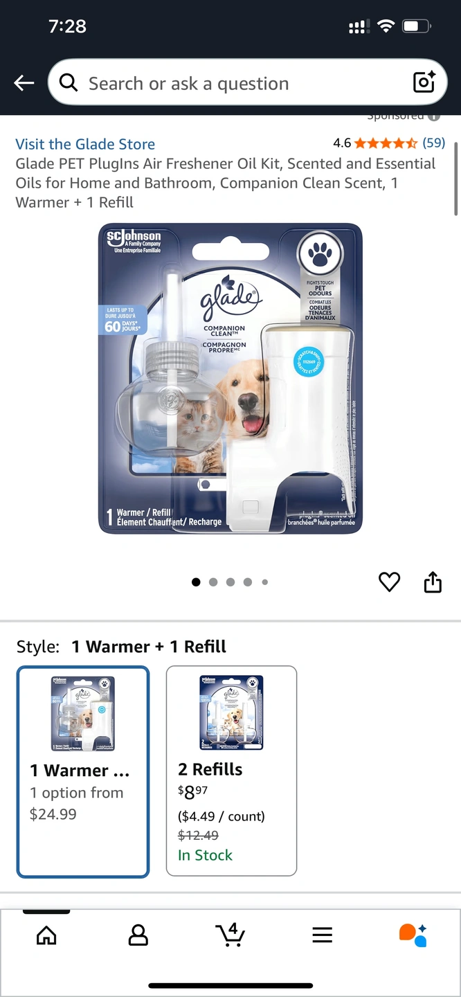 Keep your home smelling fresh with the Glade PET PlugIns Air Freshener Oil Kit! This kit includes one warmer and one refill in the Companion Clean scent. It's designed for homes with pets, helping to neutralize odours and keep your space inviting