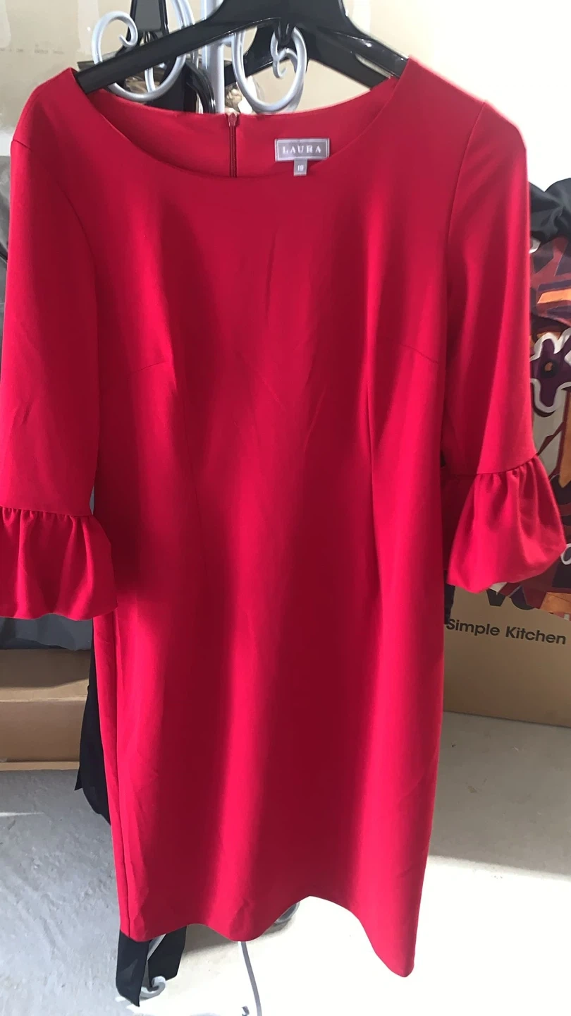 10Selling a lovely red Laura dress in size 16. It features a flattering silhouette and stylish bell sleeves. Perfect for a night out or a special occasion!