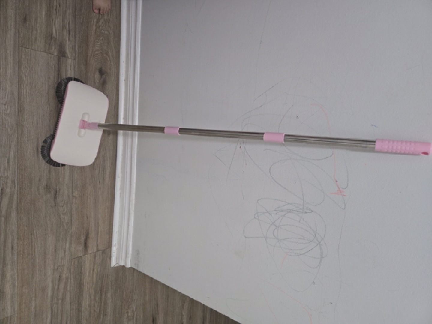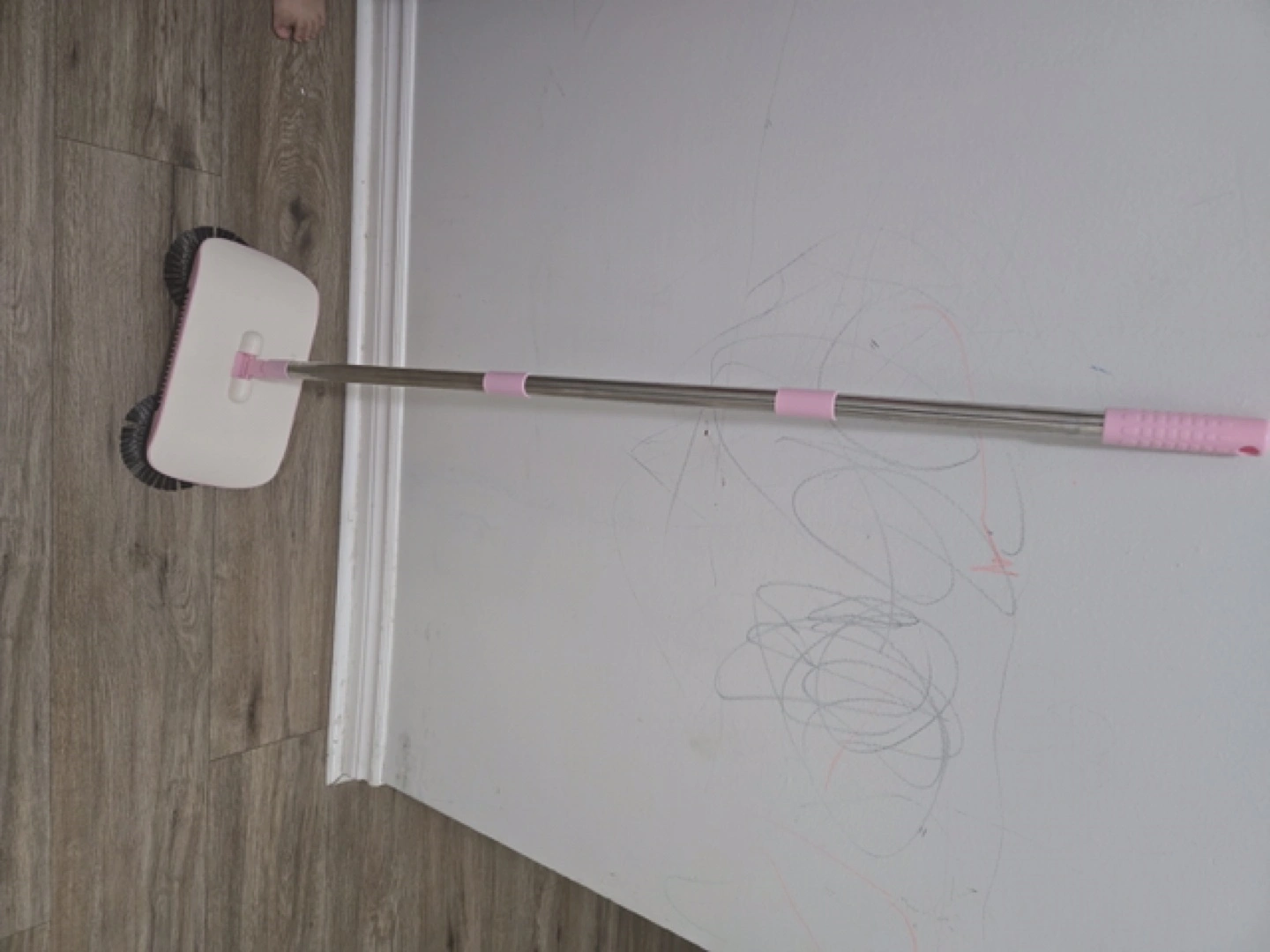 Selling a hand push sweeper in pink! It's great for quick cleanups around the house. Easy to use and doesn't require batteries or electricity