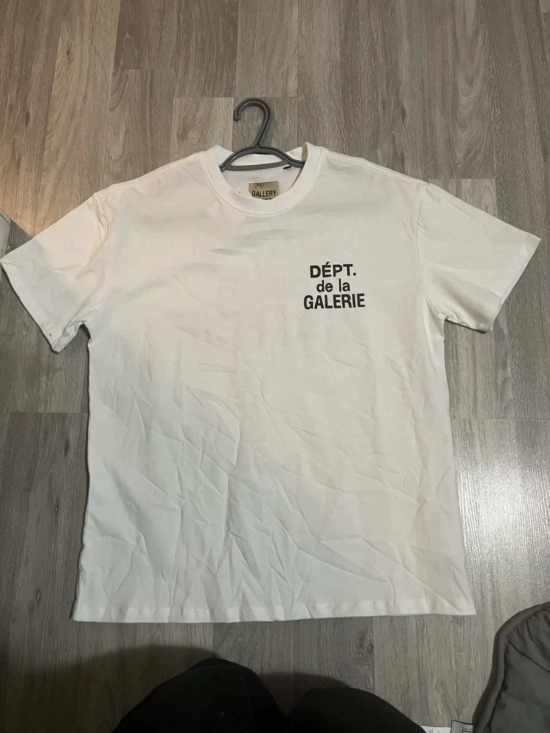 Selling a Gallery Dept. white t-shirt. It has "DEPT. de la GALERIE" printed on the front and back.