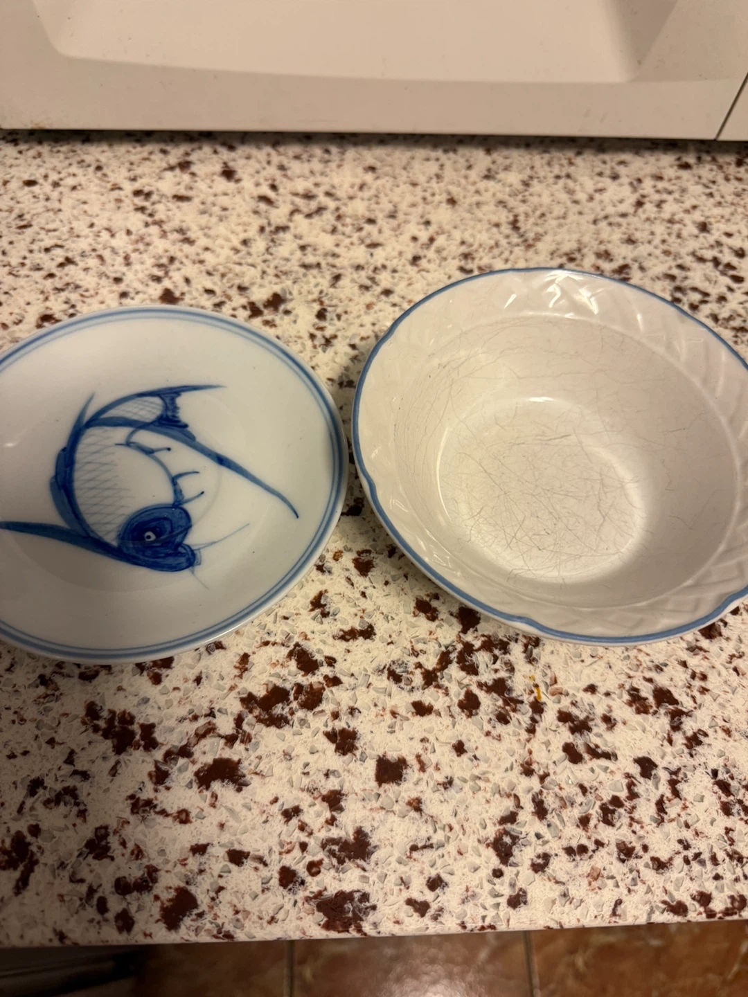211Giving away a white bowl with a blue rim and unique fish design saucer!🥕