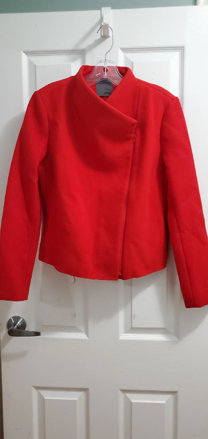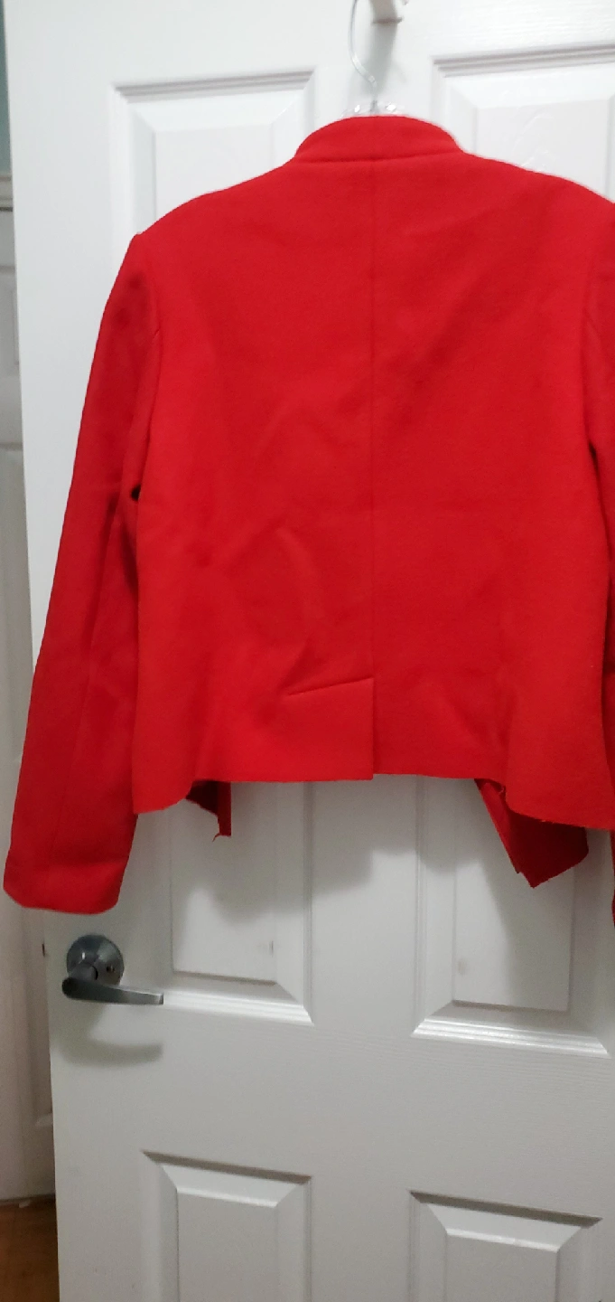 Selling a vibrant red jacket from JNBY! It's a stylish wool blend jacket, perfect for adding a pop of colour to your wardrobe. The size is medium