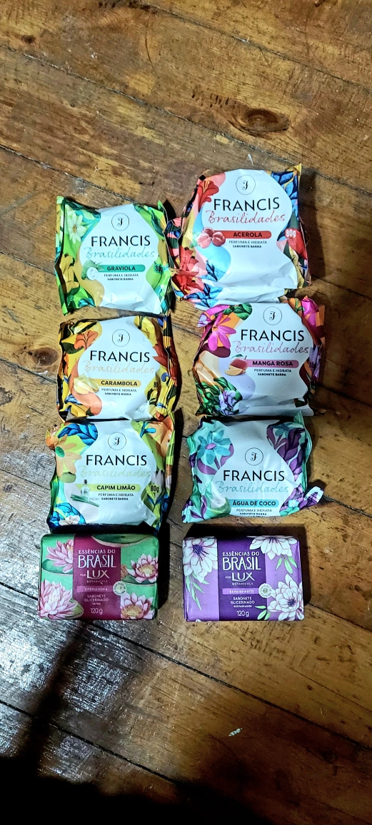 Selling a collection of Brazilian bar soaps. There are several different scents to choose from, including Soursop, Acerola Cherry, Star Fruit, Pink Mango, Lemon Grass, and Coconut Water 80g/ $ 1.5 each.