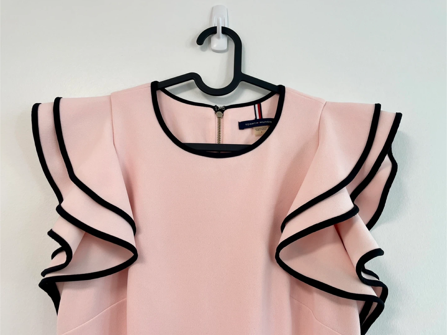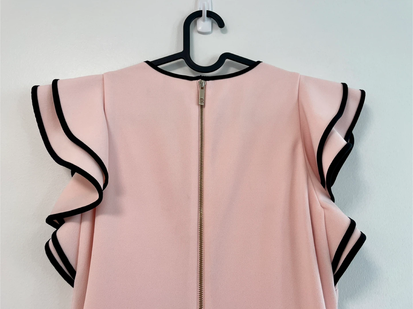 π Lovely shade of pink and features adorable ruffle sleeves with black trim.
