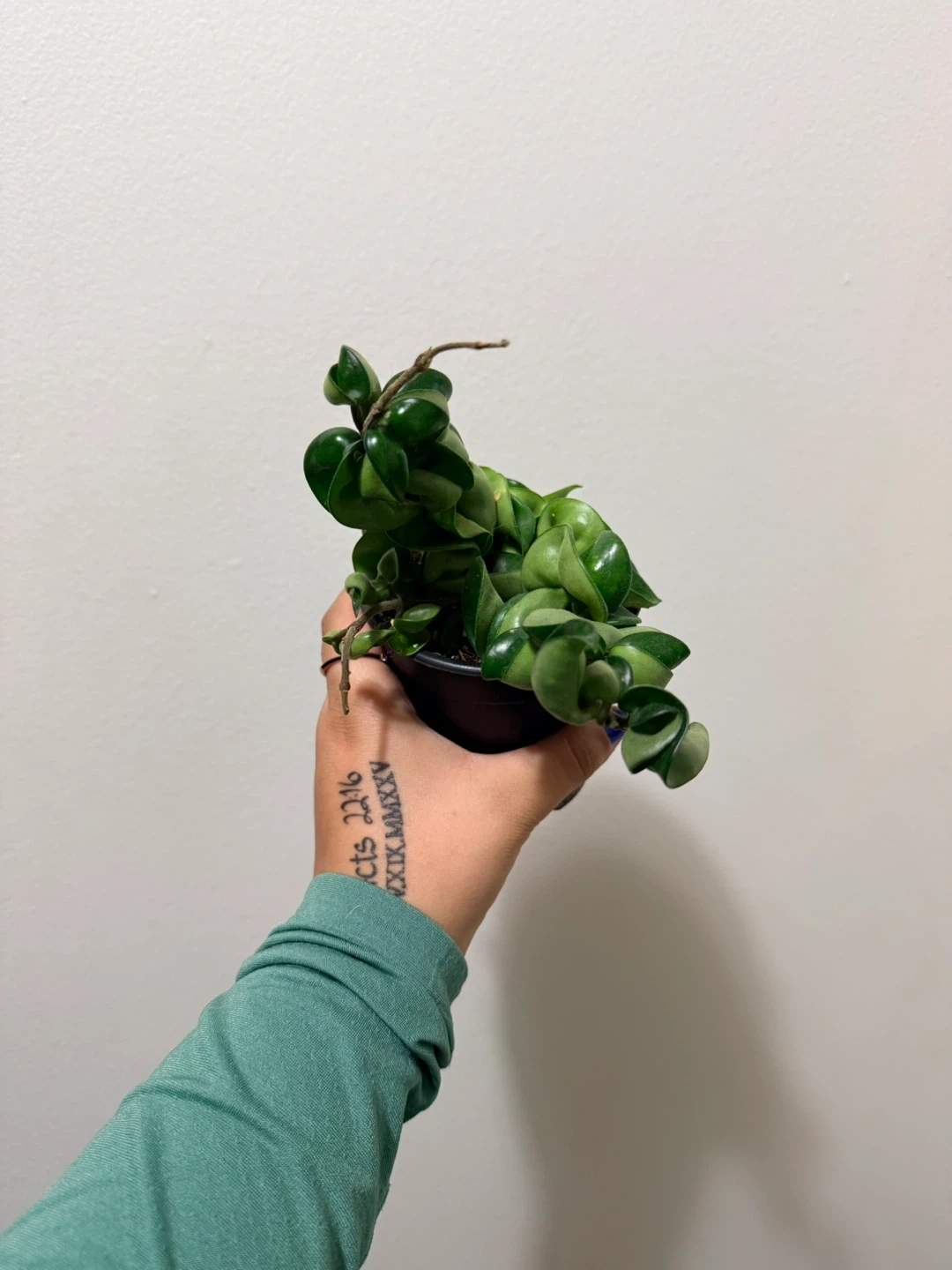 Selling a healthy Hoya Compacta plant in a black plastic pot. It's a beautiful and easy-to-care-for houseplant with unique, twisted leaves. Perfect for adding a touch of green to your home!