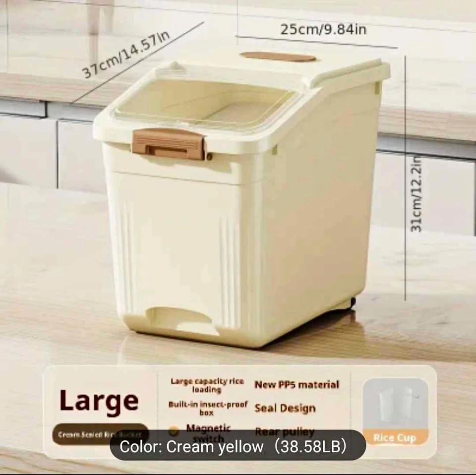 Brand new in box. Outer Box is not perfect. Household Rice Storage Barrel, Insect and Moisture Proof, Large Capacity Thickened PP Material, Sealed Storage Box for Rice, Grains, Flour, with Measuring Cup Pick up near Erin Mills town center mall. Please check out My other listings for new kitchen and household items. Please serious buyers only message