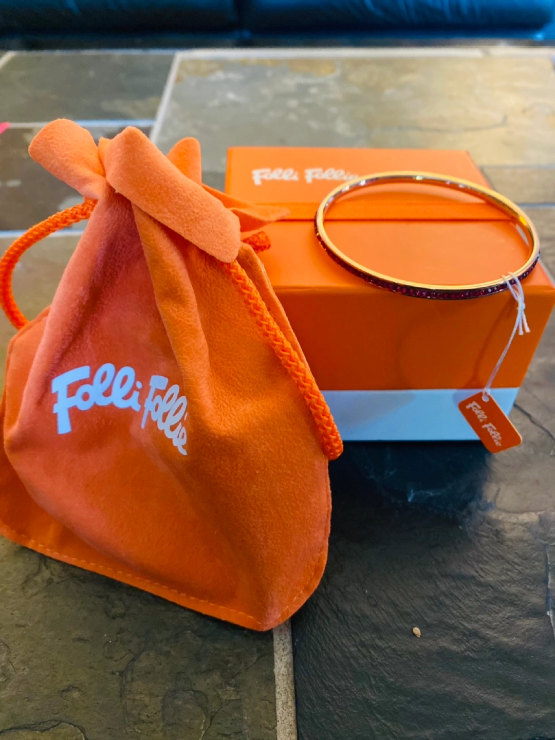 • Foli Folli Gold Bangle Bracelet with Red Crystals