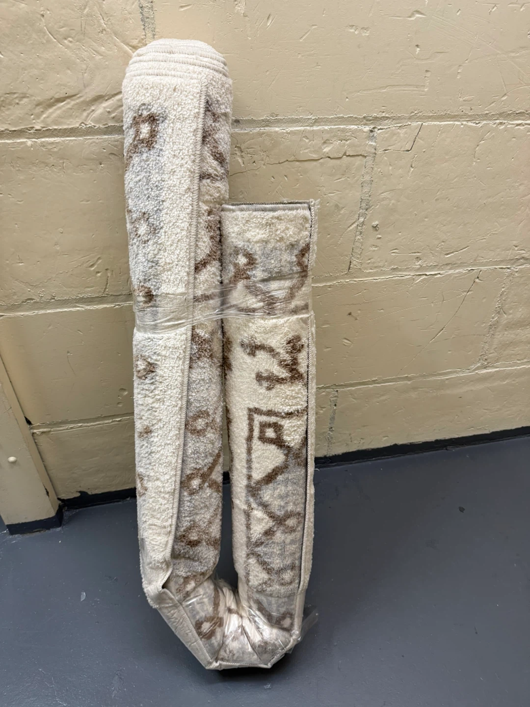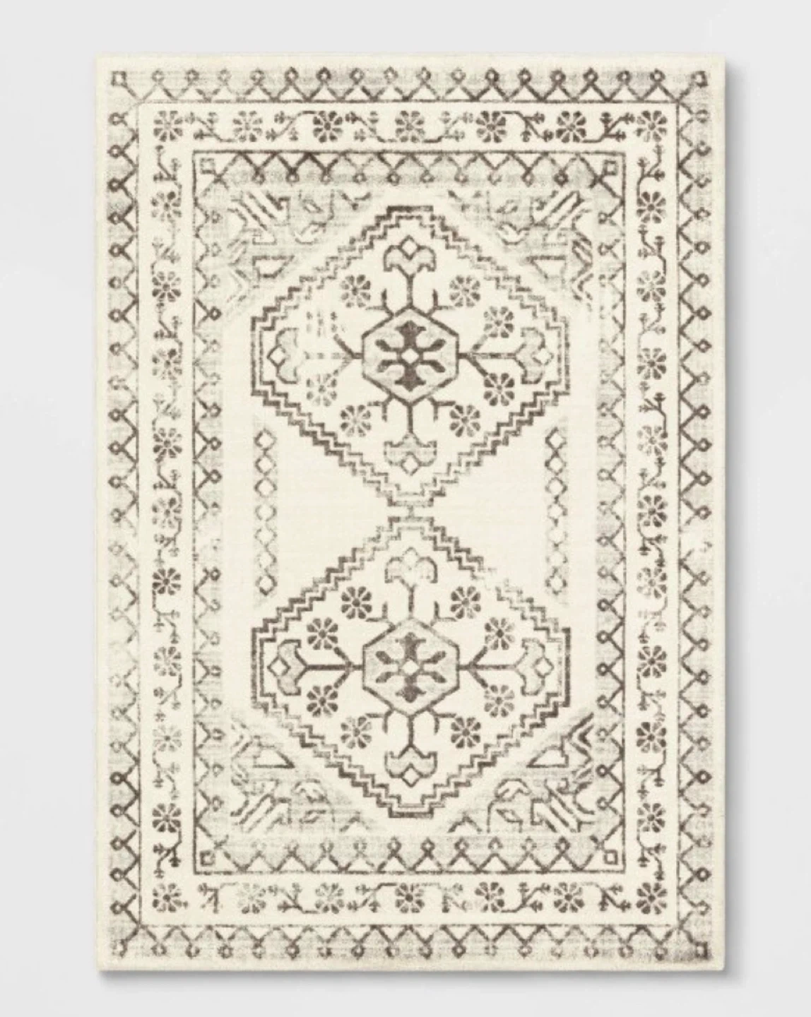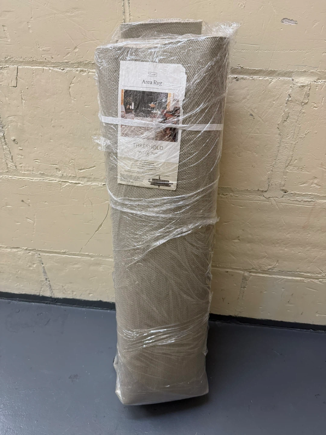 Selling a Threshold Kensington area rug. The rug features a stylish Persian pattern and neutral color palette that would complement any room. It is made from durable materials, perfect for high-traffic areas in your home. 1 edge is a bit dirty but will be brand new with some light cleaning.