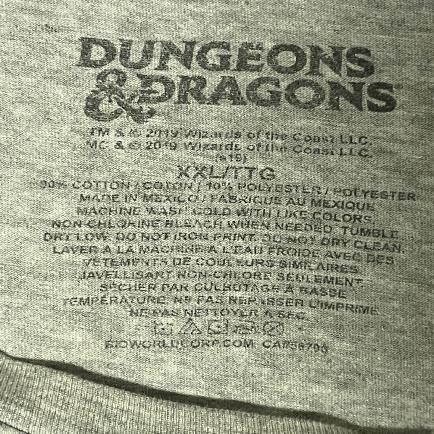 Dungeons & Dragons graphic t-shirt in size XXL. Grey colour, made of 90% cotton and 10% polyester.
