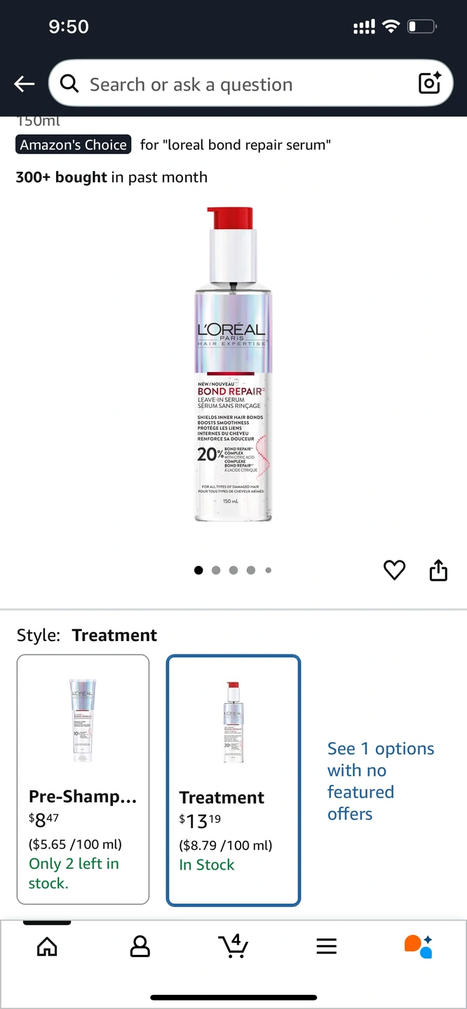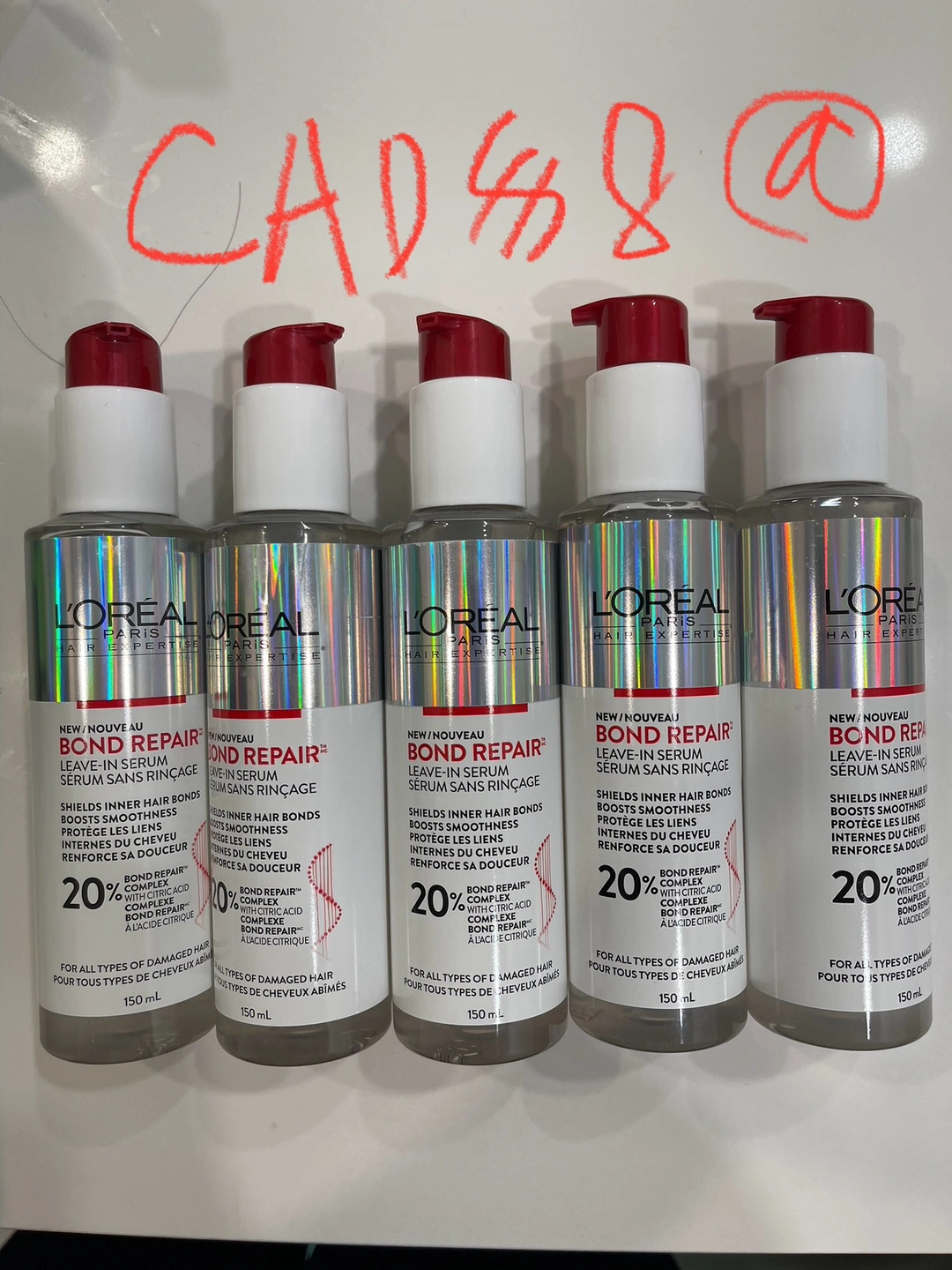 I'm selling a brand new bottle of L'Oréal Paris Elvive Bond Repair Leave-In Serum! This serum is designed to shield inner hair bonds and boost smoothness. It's formulated with citric acid and is suitable for all types of damaged hair. Each bottle contains 150 mL. Retails for $13.19