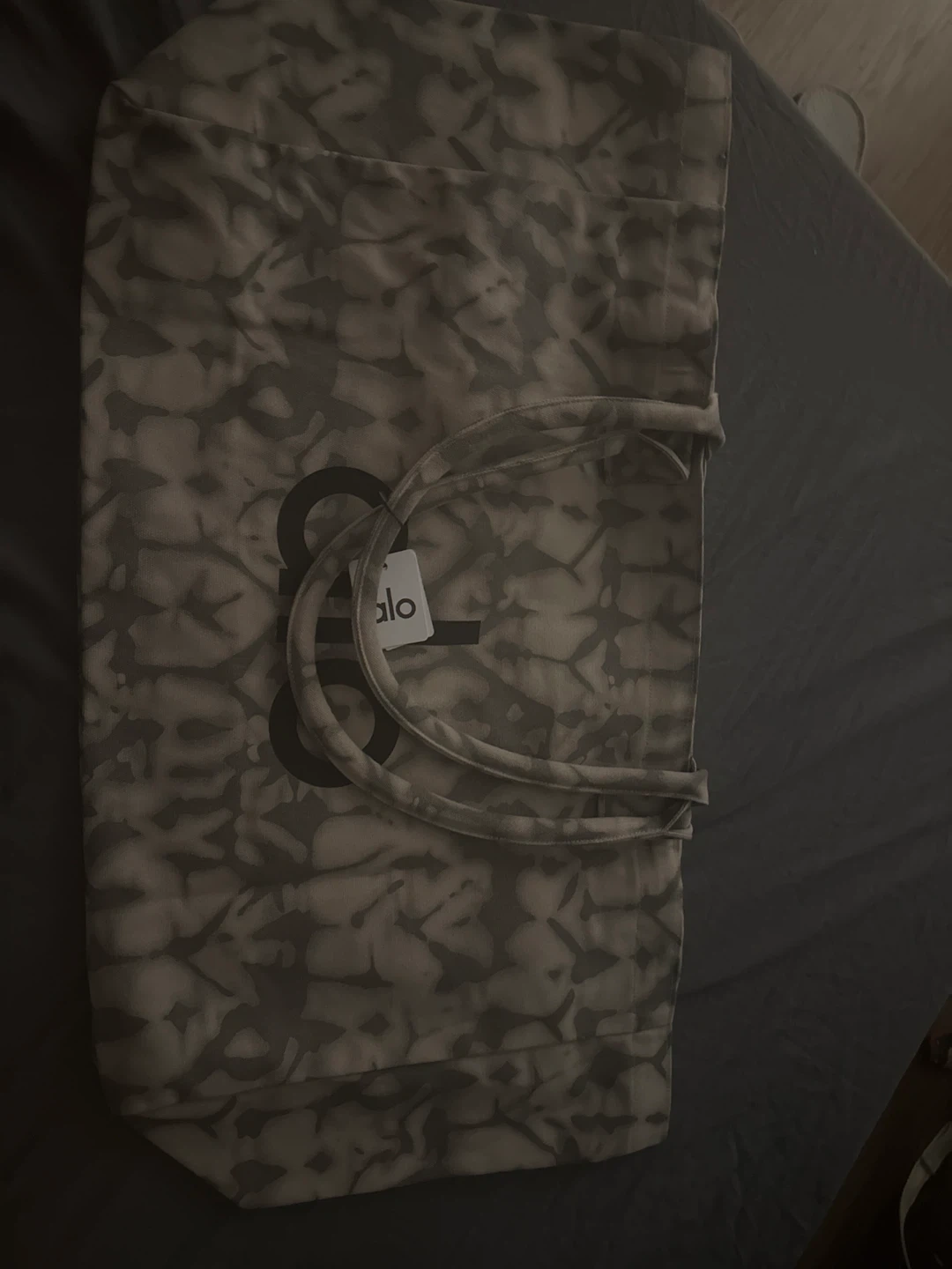 Selling a brand new with tags Alo Yoga tote bag! It's in the Gray Batik color. This is a great bag for carrying your yoga gear or just for everyday use. The tag shows the price was $68 CAD
