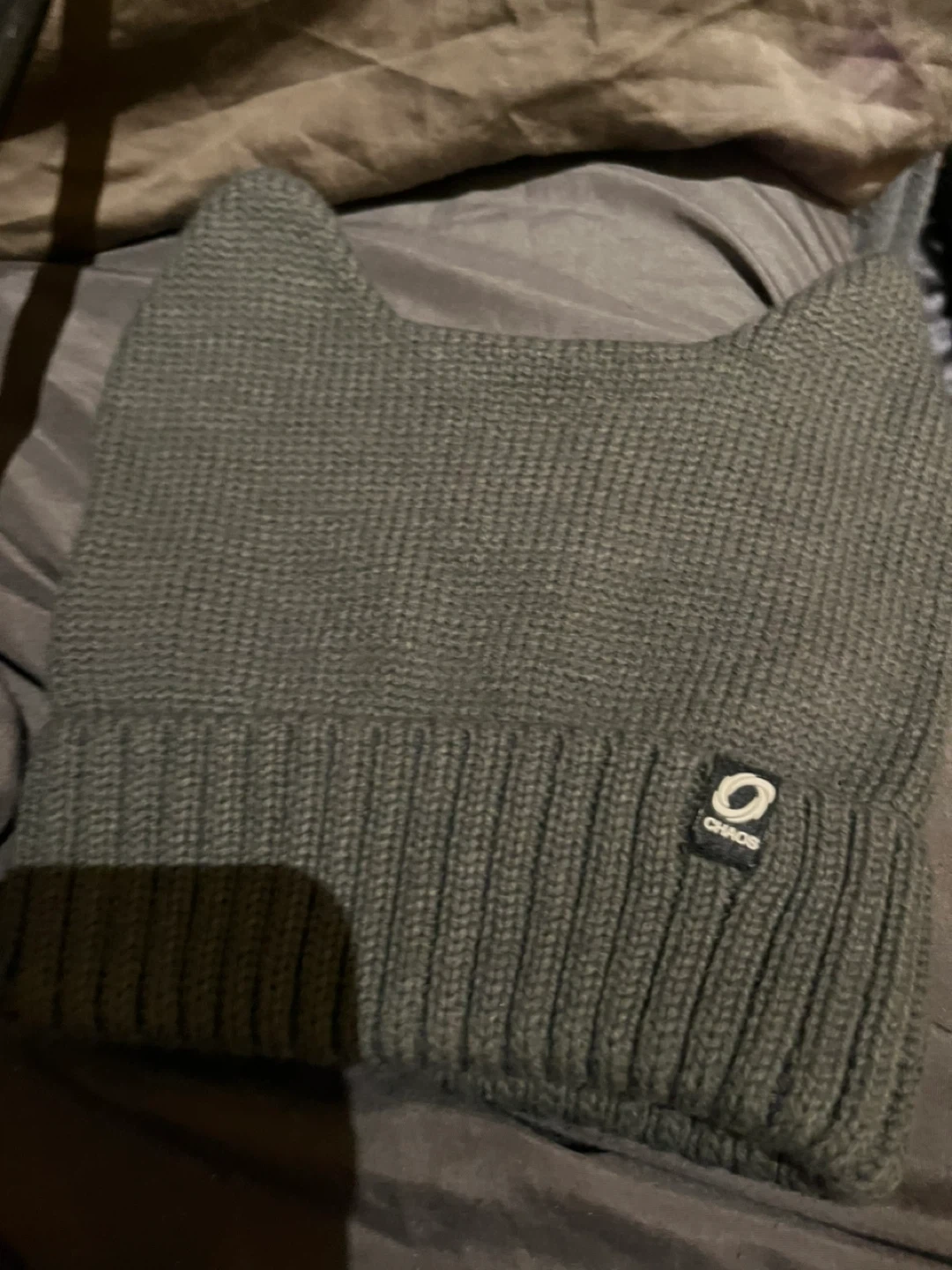 Selling a cute grey cat beanie from Chaos! It's in great condition and super cozy for the Canadian weather. Perfect for adding a bit of fun to your winter wardrobe!
