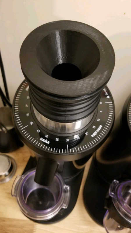 15DF64 / Turin64 grinder accessories which further improve this great affordable single dosing low retention grinder. 3D printed, made with food safe plastic and stainless steel filament. Mostly under $15 Each. Most Important Mod I'd say is the Angled / Closer Holding dosing cup mod which keeps the cup closer to the spout, so when you pump the bellows it's a lot less messy. $15 for the straight extension and $20 for the angled extension (I think I prefer the straight one). The Anti-Poppcorning Funnels $25 (Two different styles available) Helps with preventing popcorning and keeps grinds more consistent, also keeps the top part of grinder cleaner I find and you can drop beans in while the grinder is running without making a mess. Lagom Style Top LID works in Combination with the top funnel which makes it easier to throw in beans and not have to fiddle with the heavy metal lid. LID alone is $5 (Doesn't work as well alone) since it's not a precise fit. LID & Top Funnel is $15 I find it's harder to use the bellows this way. These Dial Indicators are $6 each. I currently have a couple white Ones one's a bit too tight another a bit too loose, the tight one you can sand the inner part a little otherwise it's tough to get on and off. I have other better fitting designs for $12 I also have a 3d printed Single Dosing mod for the Eureka Specialita and XL as well as a bellows / blower that works perfectly with it. I also have Some funnels and tamp stands, and home made needle distributor tools which greatly help with efficient espresso extractions and reduce channeling. $15 for needle tool. Check my other listings for more coffee accessories! Thanks for viewing!