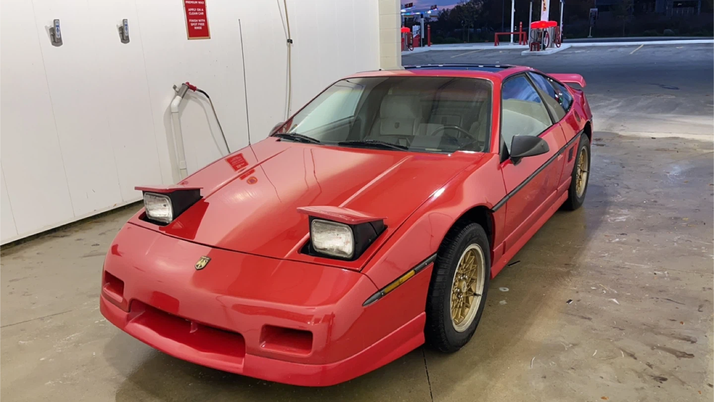1986 Fiero GT 4 speed currently not driven as it started making a noise in the rear needs a caliper and wheel bearing. Cosmeticly paint isn’t perfect trunk and spoiler need repainted has crack in quarter glass and in one side skirt but comes with new slide skirts and in box tinted quarter glass. Open to trades