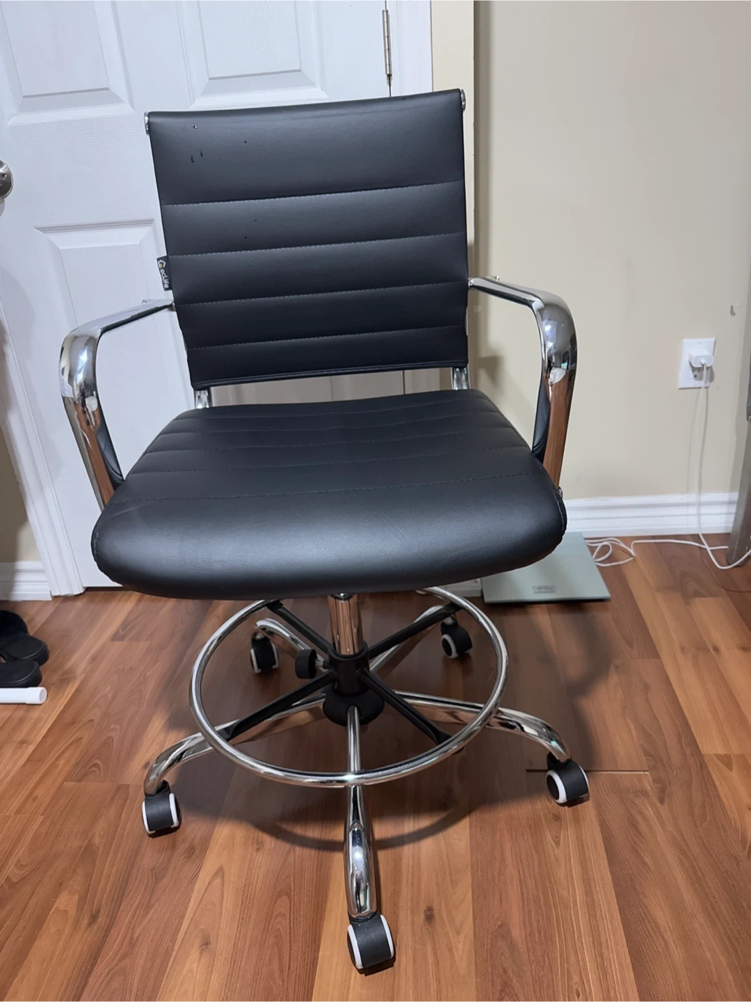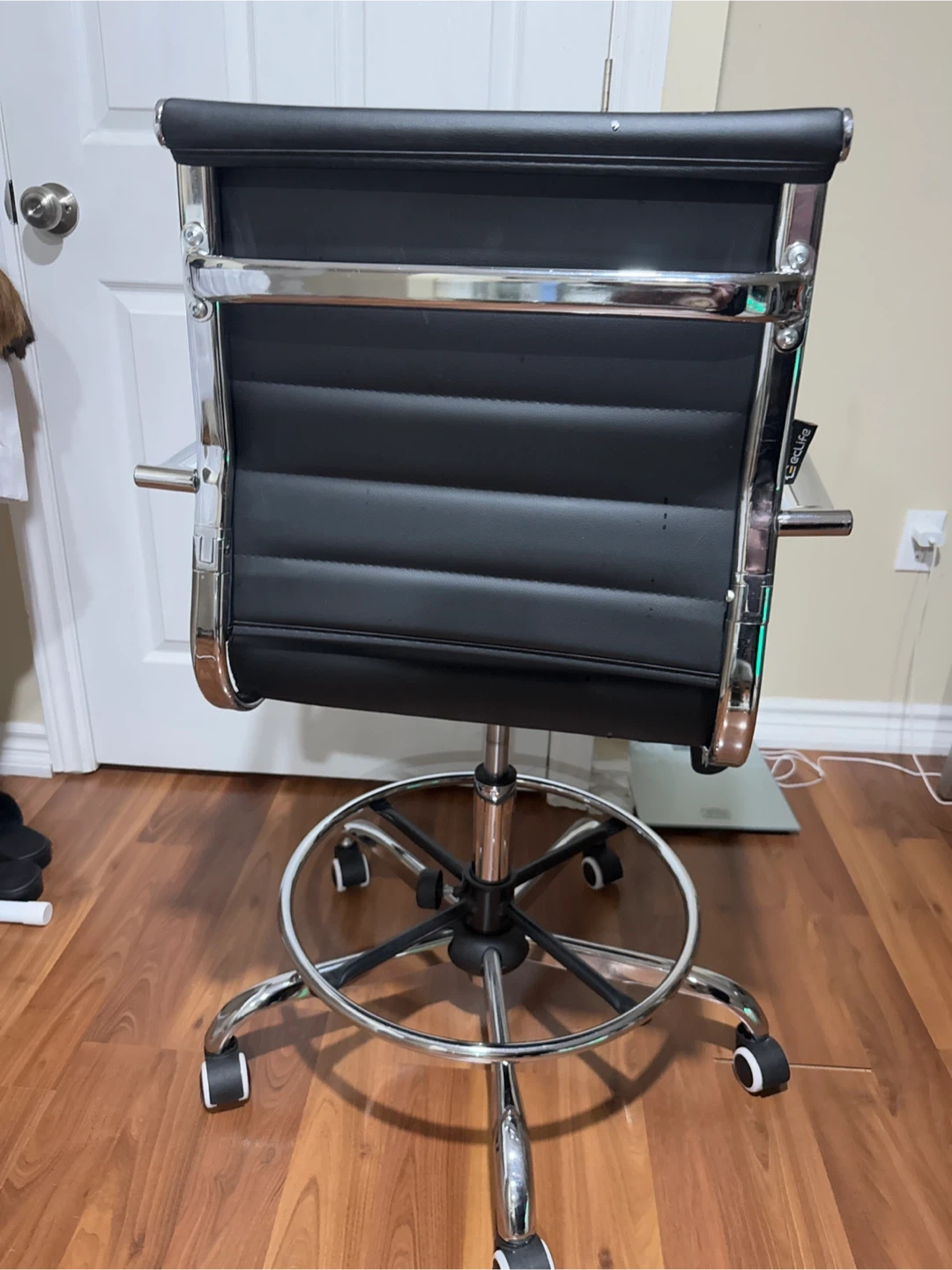 Selling a black office chair. It's in great condition and ready for a new home office! The chair has a chrome frame and a padded seat and back for extra comfort