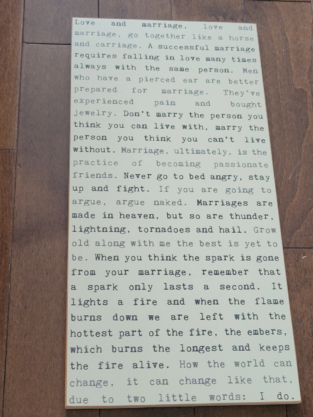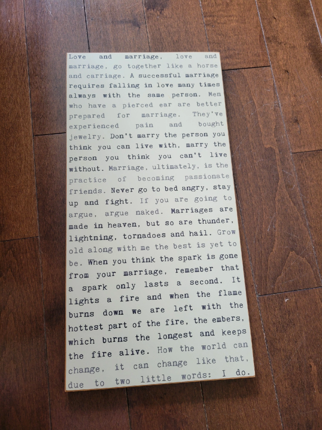 103This Cedar Mountain Studios picture adds a touch of rustic charm with its heartwarming marriage quote, perfect for adding character to any room. Like New condition Typewriter Signs 16" x 8" $50 Firm Perfect engagement or wedding gift Fennell and Upper gage Hamilton Please see my many other ads too