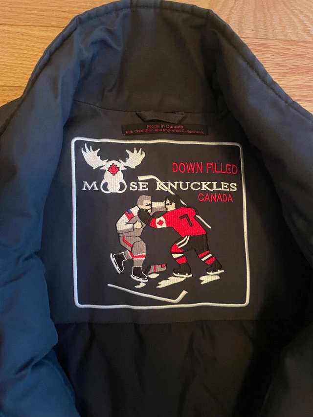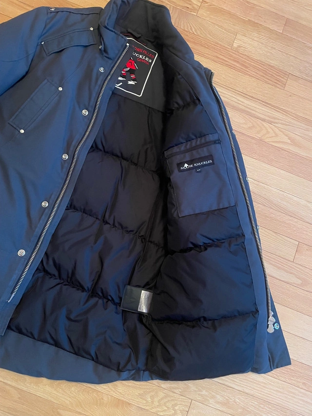 140Made in Canada - Moose Knuckles Parka Size - men’s XL Excellent condition. Stay incredibly warm with this Moose Knuckles parka, crafted with premium materials and designed for those frigid Canadian winters. This stylish and durable jacket features a robust outer shell, a cozy down filling, and distinctive metal details, making it a dependable and fashionable choice for braving the cold. Although it has been worn, it remains in excellent condition and is ready to provide warmth and style for many more winters to come. Here are some more details about the parka: * Material: Premium down filling * Outer Shell: Durable, weather-resistant fabric * Details: Metal logo and accents * Closure: Zipper and button closure Sorry No hood - it was misplaced in move Price firm