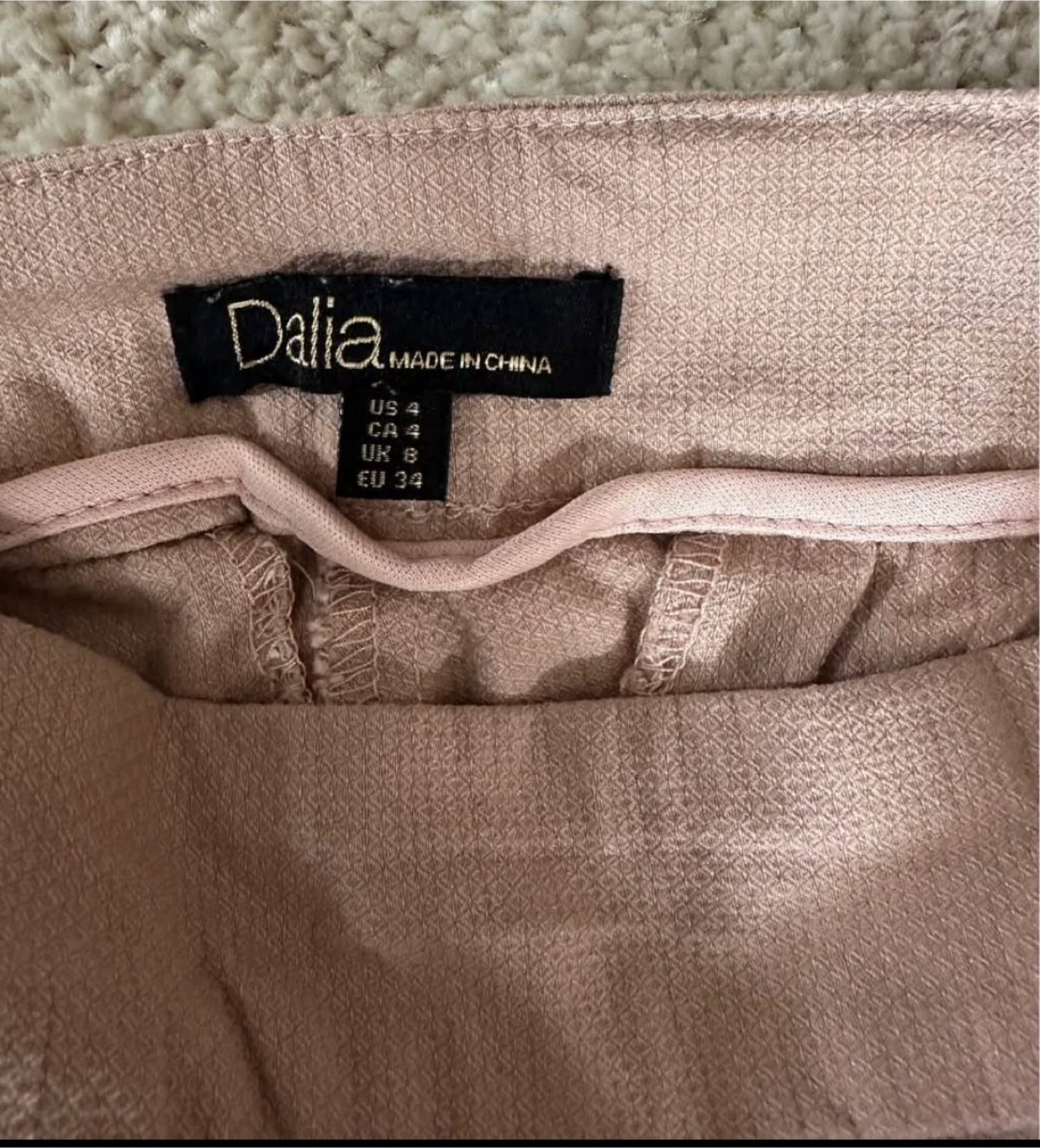 292Selling a pair of Dalia pants in a light pink colour. They are a size 4, perfect for a petite fit. These pants are in great condition and ready for a new home!