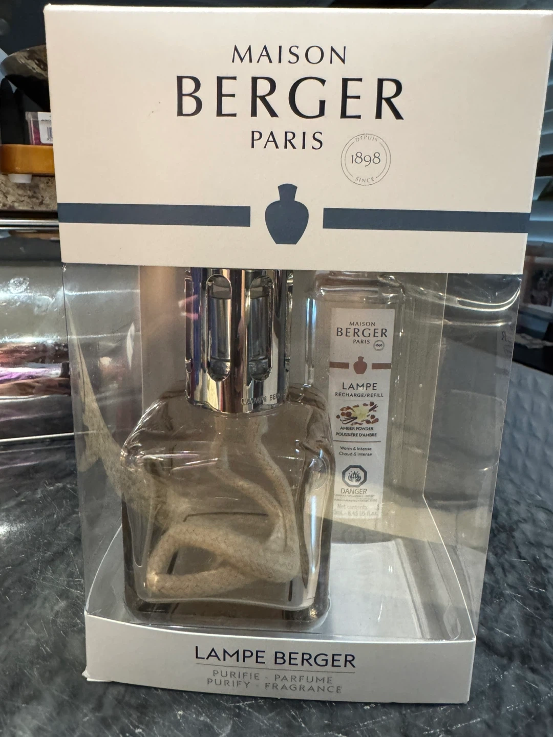 Selling a Maison Berger Paris Lampe Berger! This set includes the Lampe Berger and a recharge/refill fragrance. It's designed to purify and fragrance your home. A great way to keep your space smelling lovely