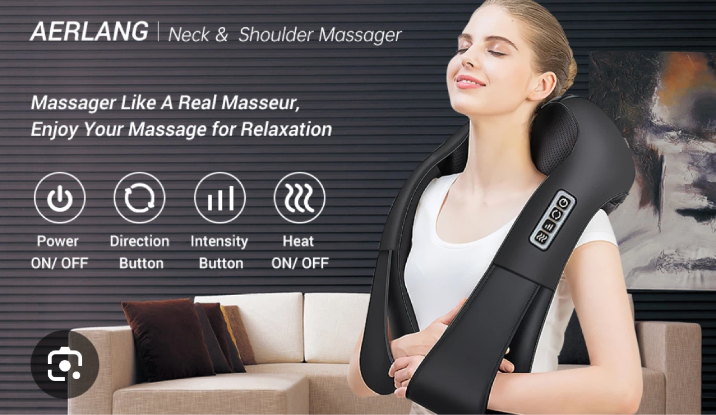 Looking to unwind after a long day? This AERLANG neck and shoulder massager could be just what you need! It's designed to feel like a real masseuse, helping you enjoy a relaxing massage right at home. It has different settings for power, direction, intensity, and heat, so you can customize your massage experience