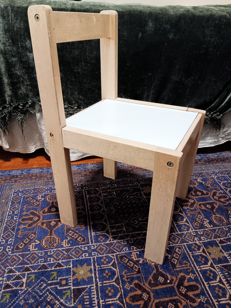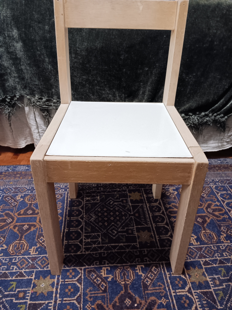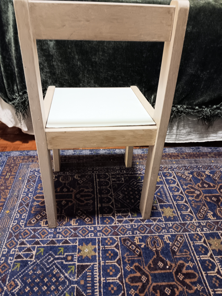🥕 Child's wooden chair with white seat