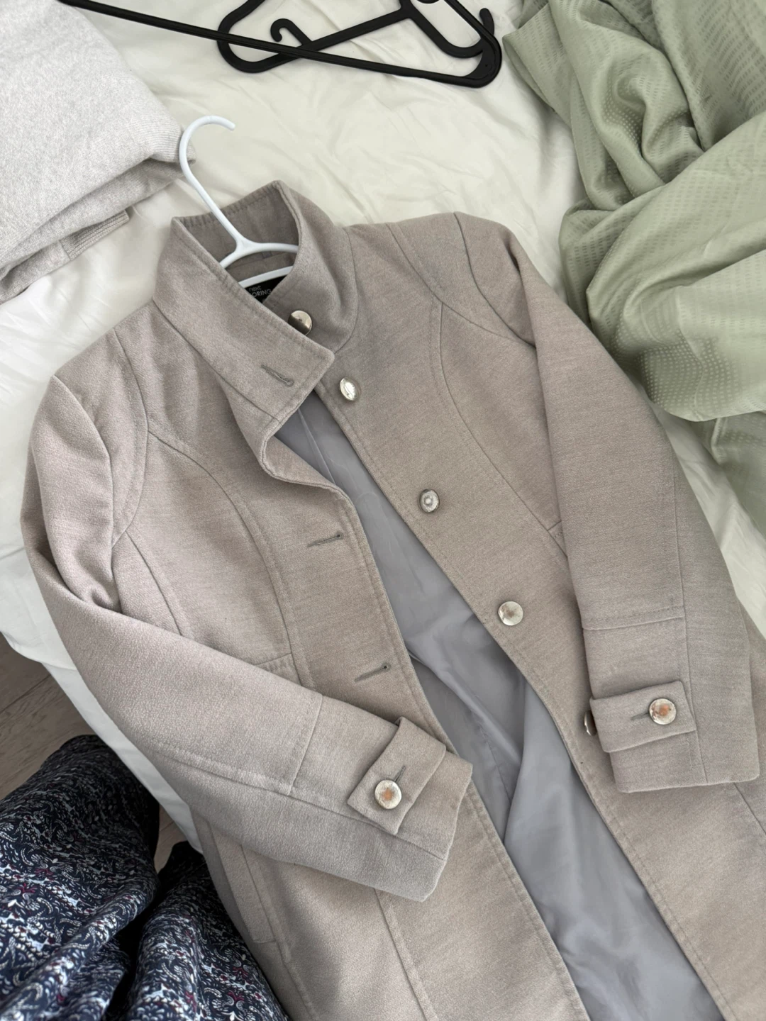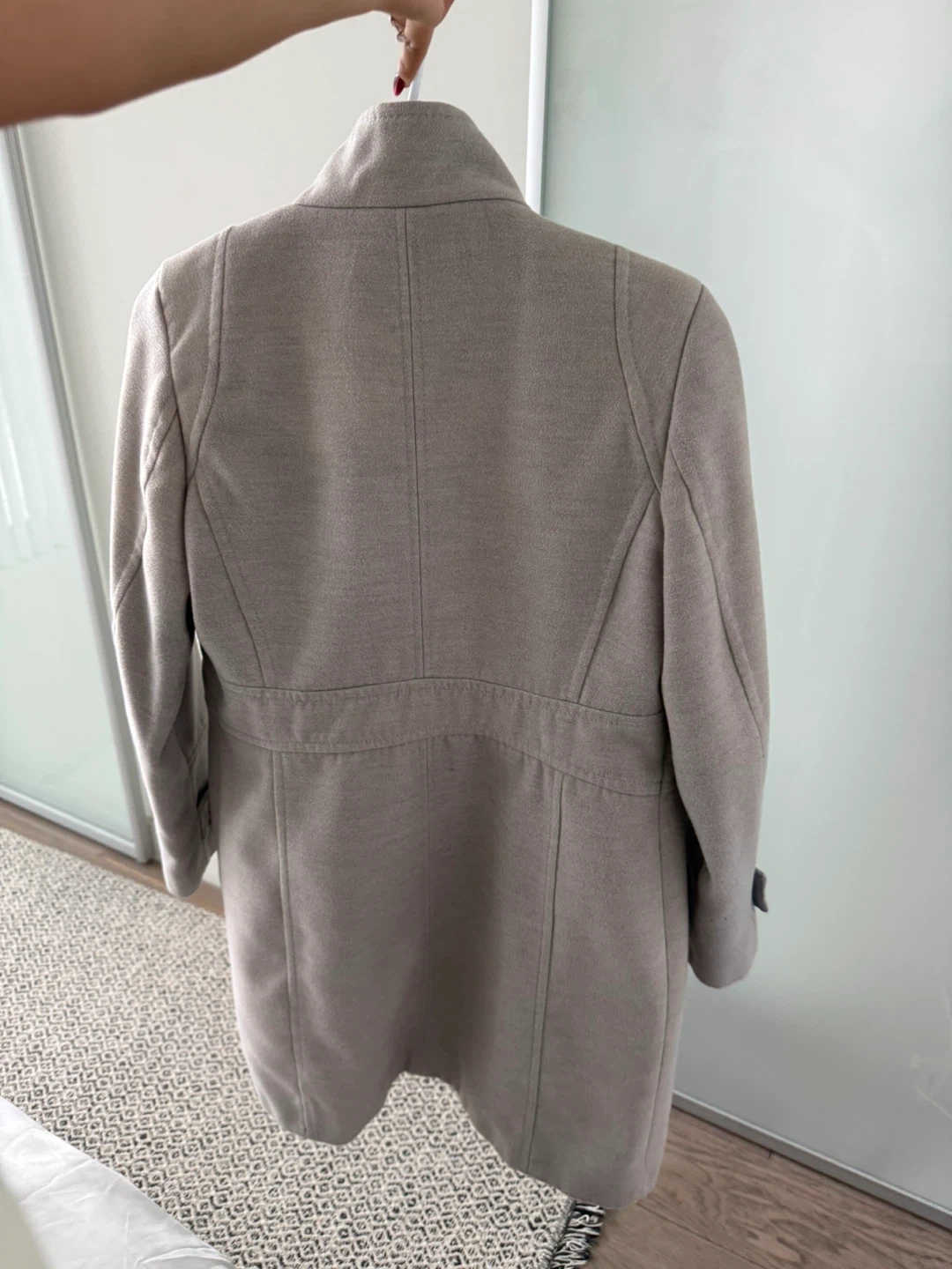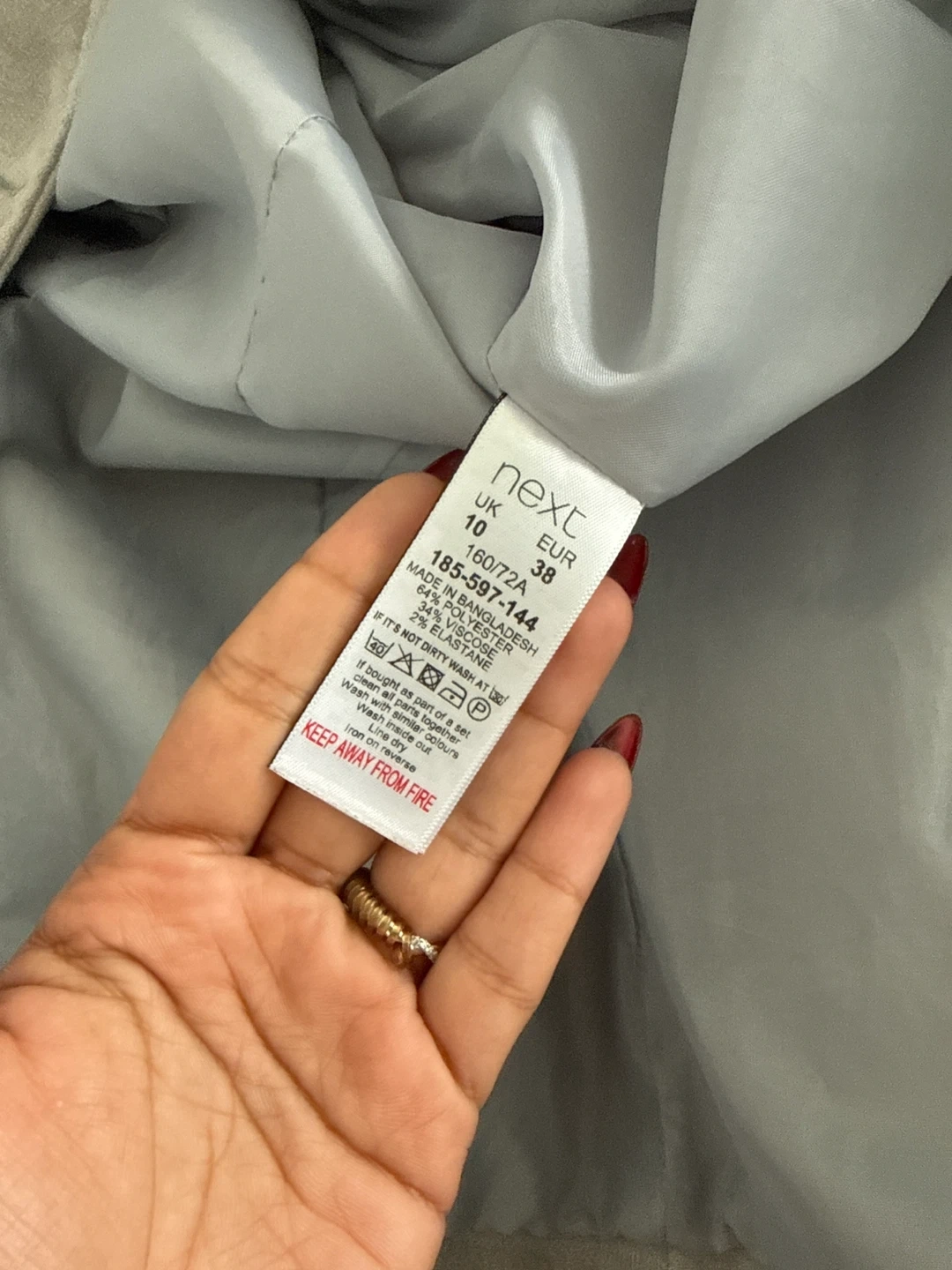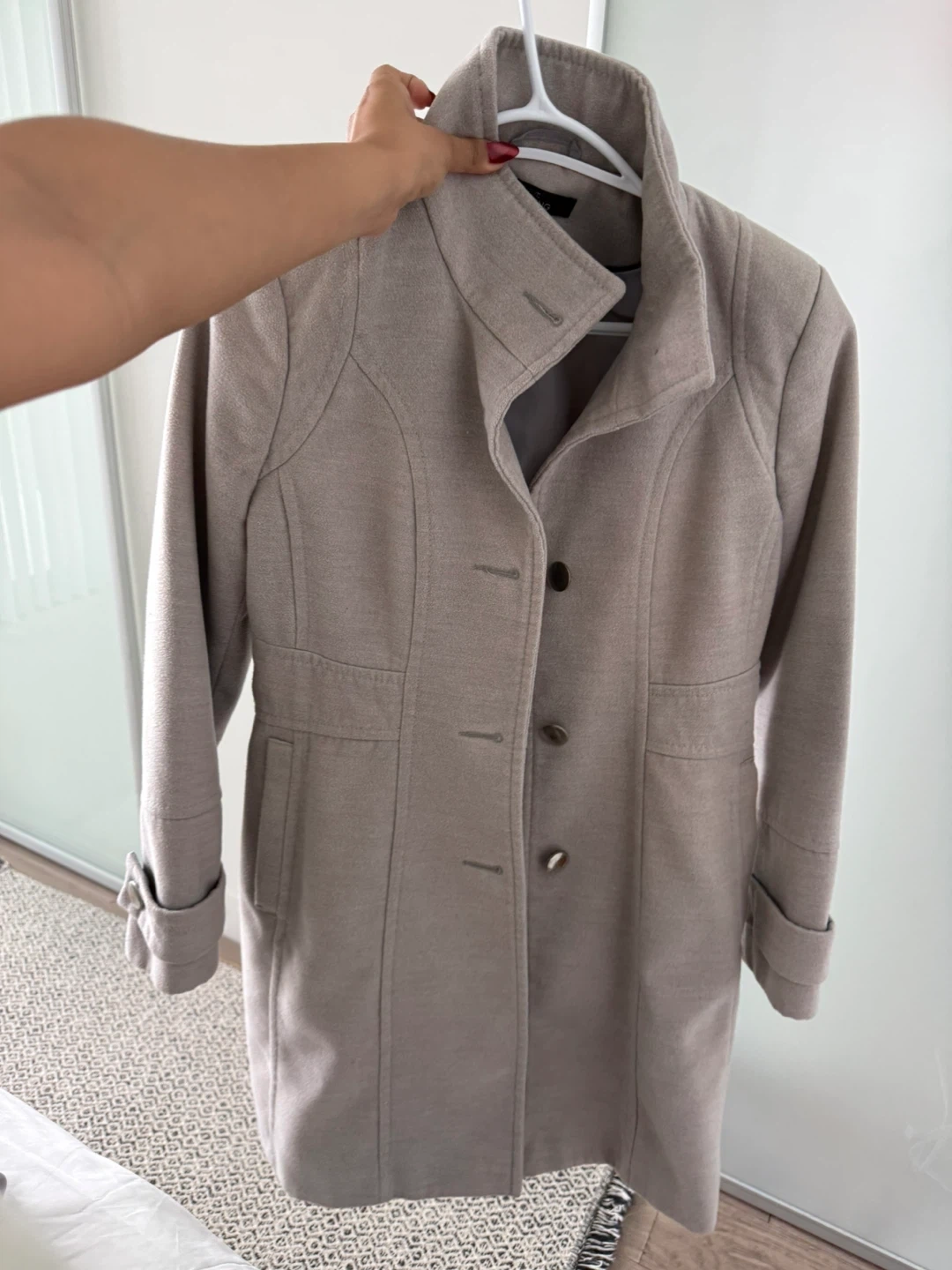 Selling a lovely beige coat from Next! It's a size 10 and made of 64% viscose, 32% polyester, and 4% elastane. It's in great condition and ready for a new home.