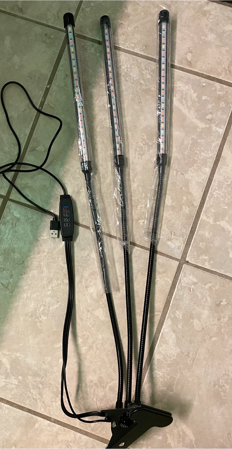36Here's a handy LED grow light with a clip! It has three light bars and a controller for adjusting the settings ( timer and 3 different type of lighting and intensity setting as well) Perfect for starting seedlings or giving your houseplants a little extra light during the winter months