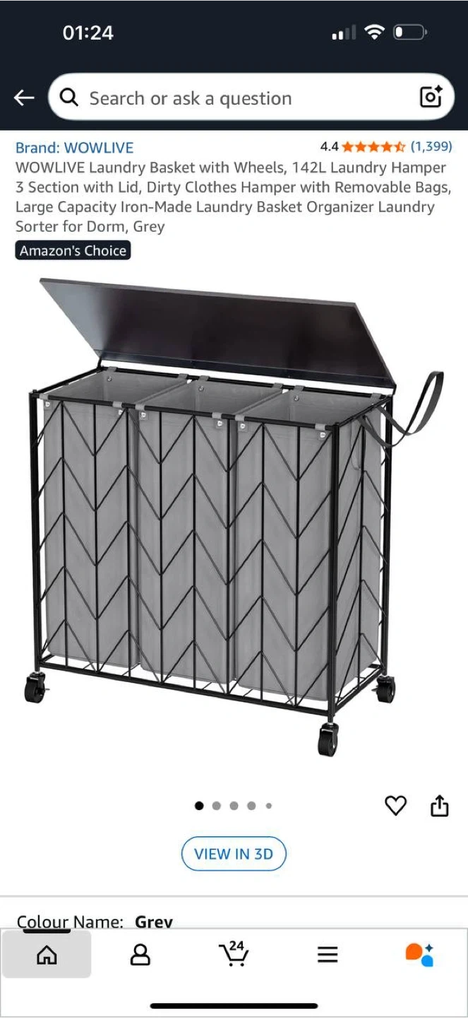 25π§Ί WOWLIVE Laundry Basket with Wheels β 142L 3-Section Hamper π©Ά π¦ Brand new β available in Grey and Black ($60 each) β¨ Also available: Beige open box (no wheels) β $40 β 3 removable laundry bags (washable and easy to carry) β Large 142L total capacity β Metal frame with smooth-rolling wheels β Top lid keeps clothes out of sight β Perfect for bedrooms, dorms, laundry rooms, or family homes β Durable and stylish β made of iron and fabric π²Price: $60 (Grey/Black) | $40 (Beige open box) πPickup in Waterloo π See my other listings for more great deals!