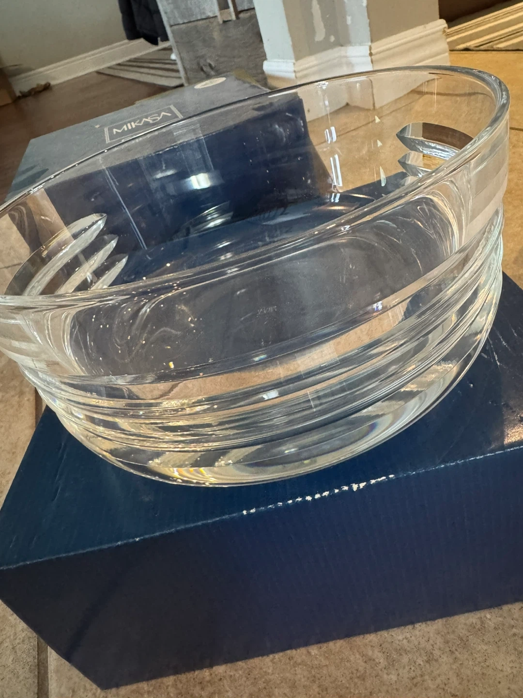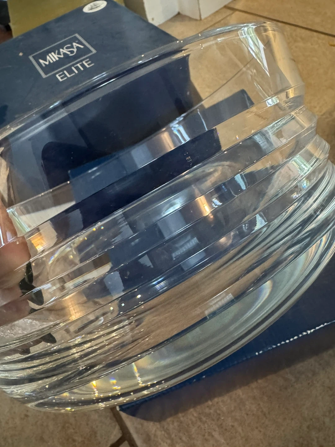 10Selling a beautiful Mikasa Elite crystal bowl! It's in new condition and comes with its original box (good condition) Perfect for serving or as a decorative piece for your home