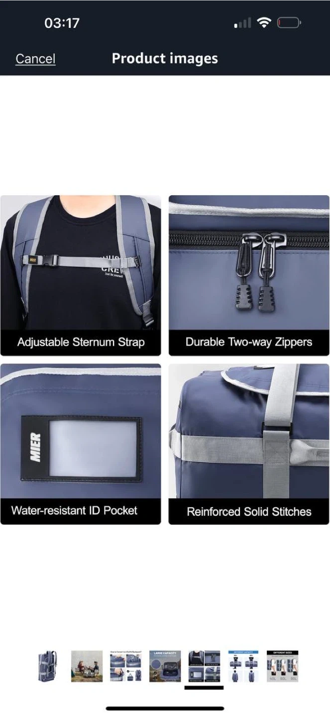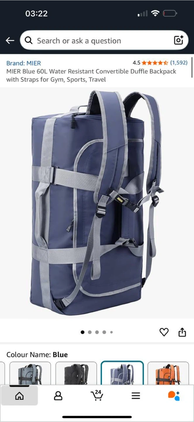 πŸŽ’ MIER Blue 60L Water Resistant Convertible Duffle Backpack β€” NEW πŸ’§ Brand: MIER πŸ“ Size: 60L 🎨 Colour: Blue (with grey straps) πŸ†• Condition: Brand new πŸ’΅ Price: $90 This high-quality convertible duffle backpack is perfect for travel, gym, camping, or sports. βœ”οΈ Water-resistant material βœ”οΈ Can be carried as a duffle bag or backpack βœ”οΈ Durable zippers and reinforced handles βœ”οΈ Adjustable padded shoulder straps for comfort πŸ“Pickup in Waterloo πŸ”Ž See my other listings for more great deals!