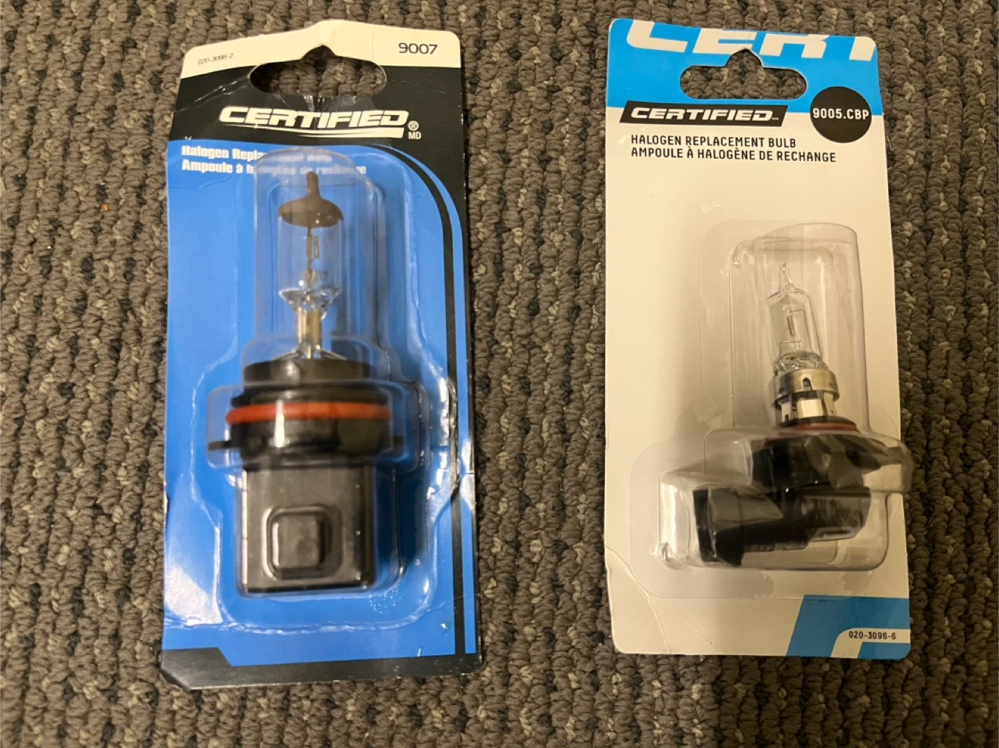 Selling two Certified Halogen Replacement Bulbs. One is a 9007 and the other is a 9005.CBP. Both are new in their original packaging