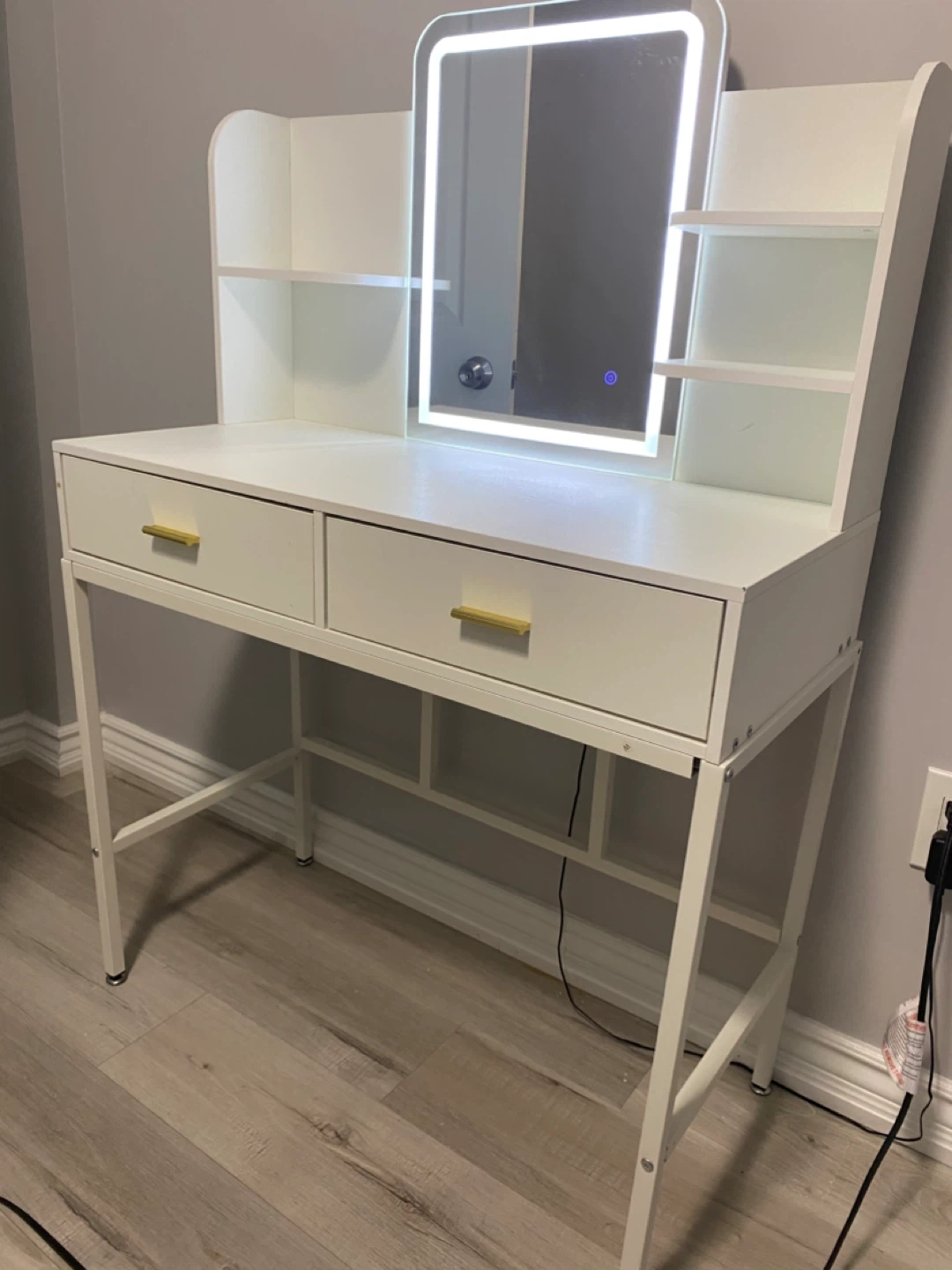 Selling a lovely white vanity table that comes with a lighted mirror! 3 light modes