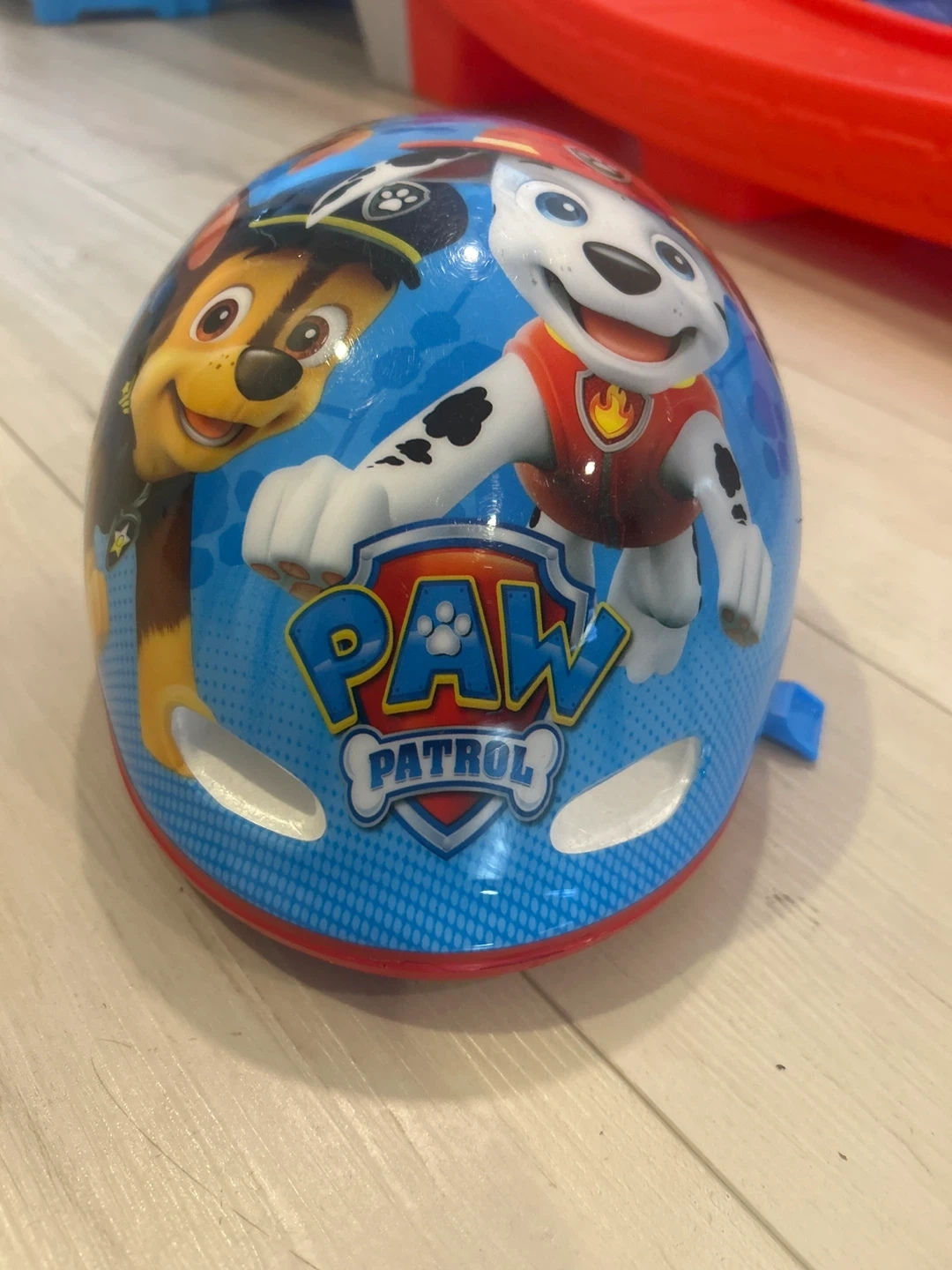 65Paw Patrol toddler helmet for sale! It's in great shape and perfect for keeping your little one safe while they bike or scooter. The size is 48-52 cm.