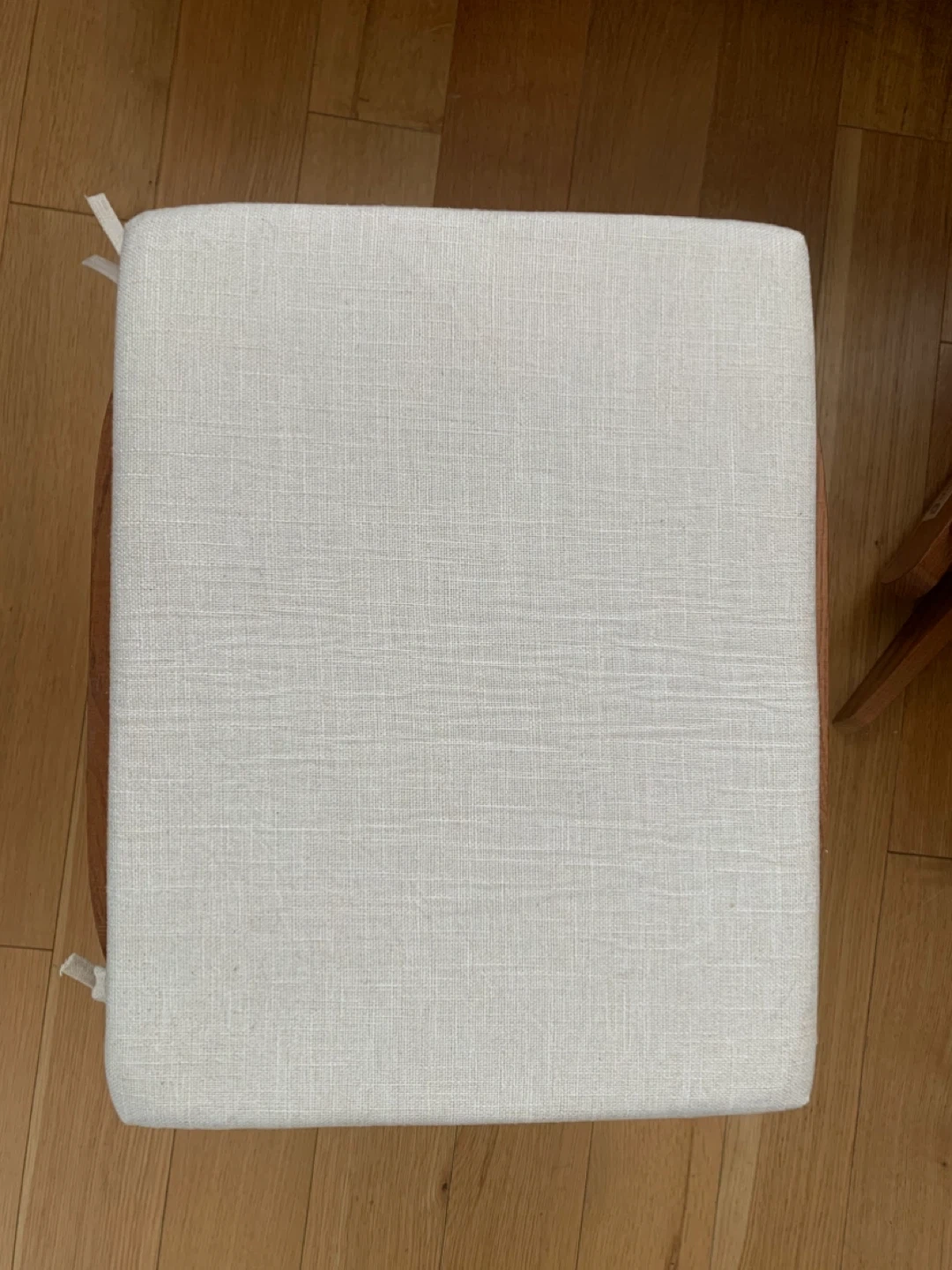Cream coloured linen-style cushions are new, clean, and machine washable (Purchased recently for $60 plus tax).