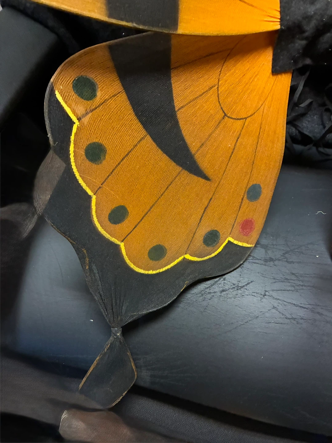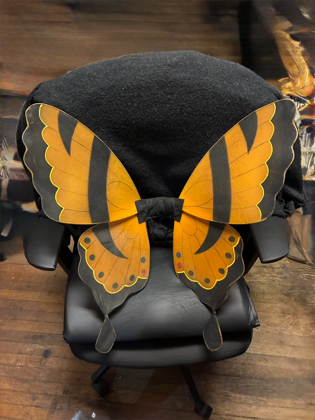 These vintage butterfly wings from the 90’s are perfect for dress-up or halloween costume and have served us for many years! They feature a beautiful orange and black butterfly design with colourful details.