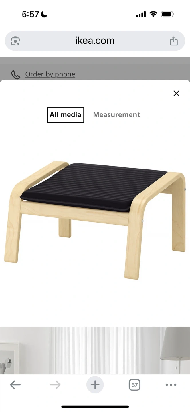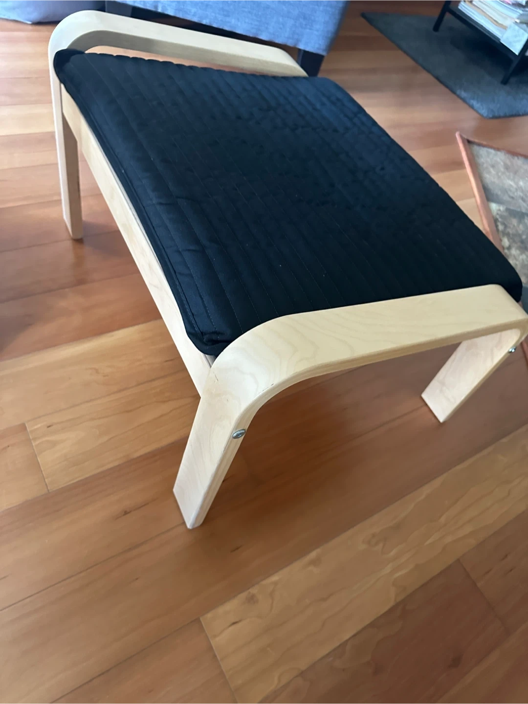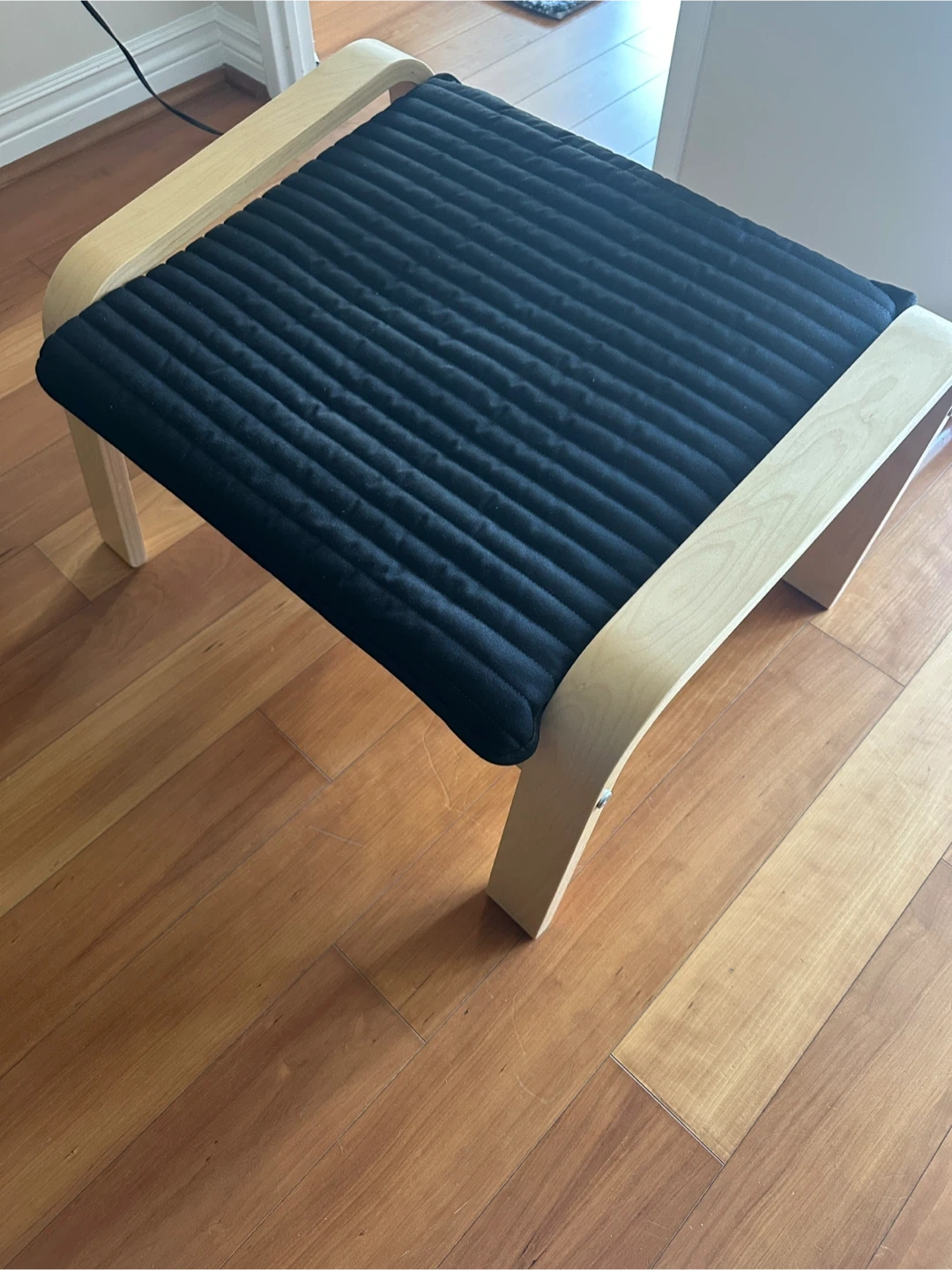 IKEA POÄNG footstool, birch veneer/Knisa black. Unboxed and assembled but barely used. No pets in the home. See images for official dimensions. Retails for $89.