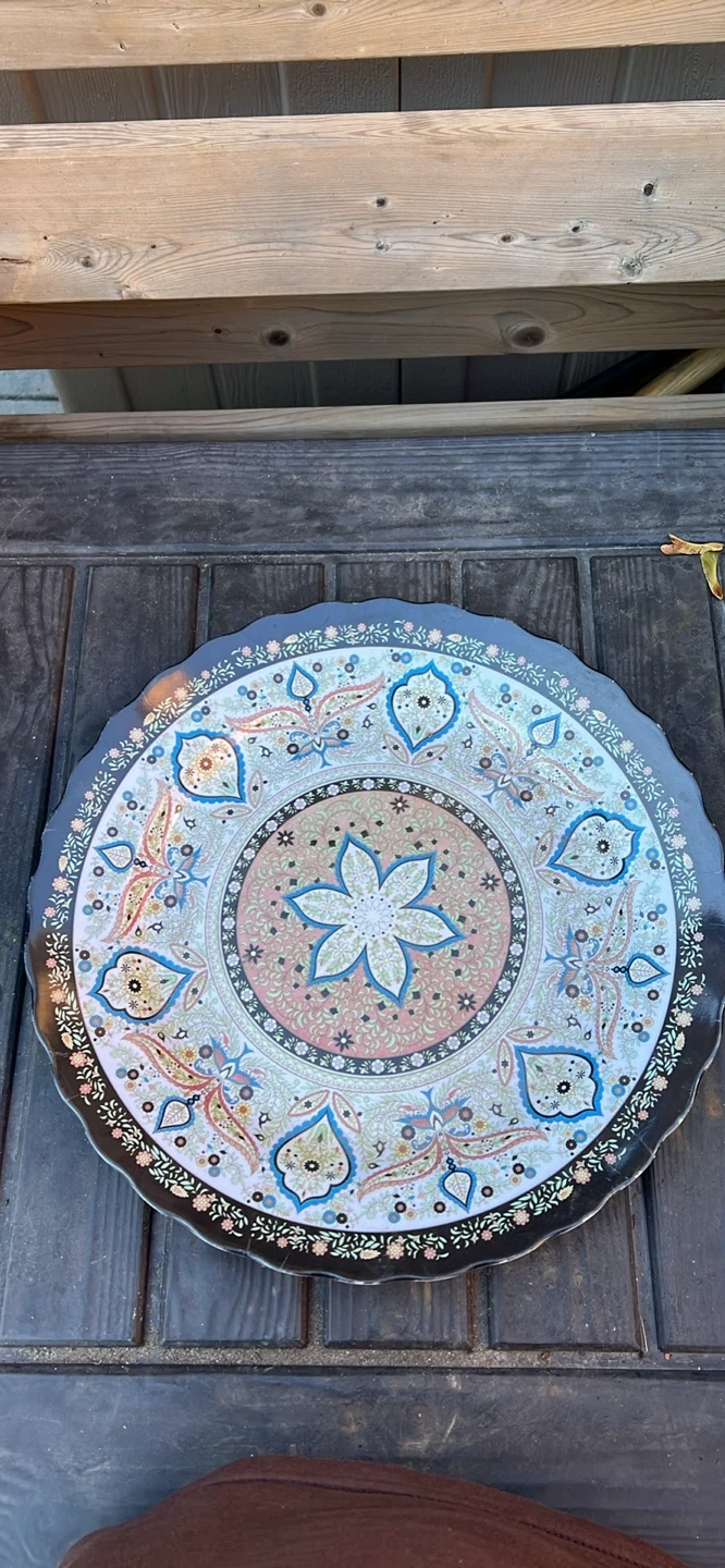 5This is a beautiful decorative plate with a floral pattern. It would look great as a centerpiece or wall decor!