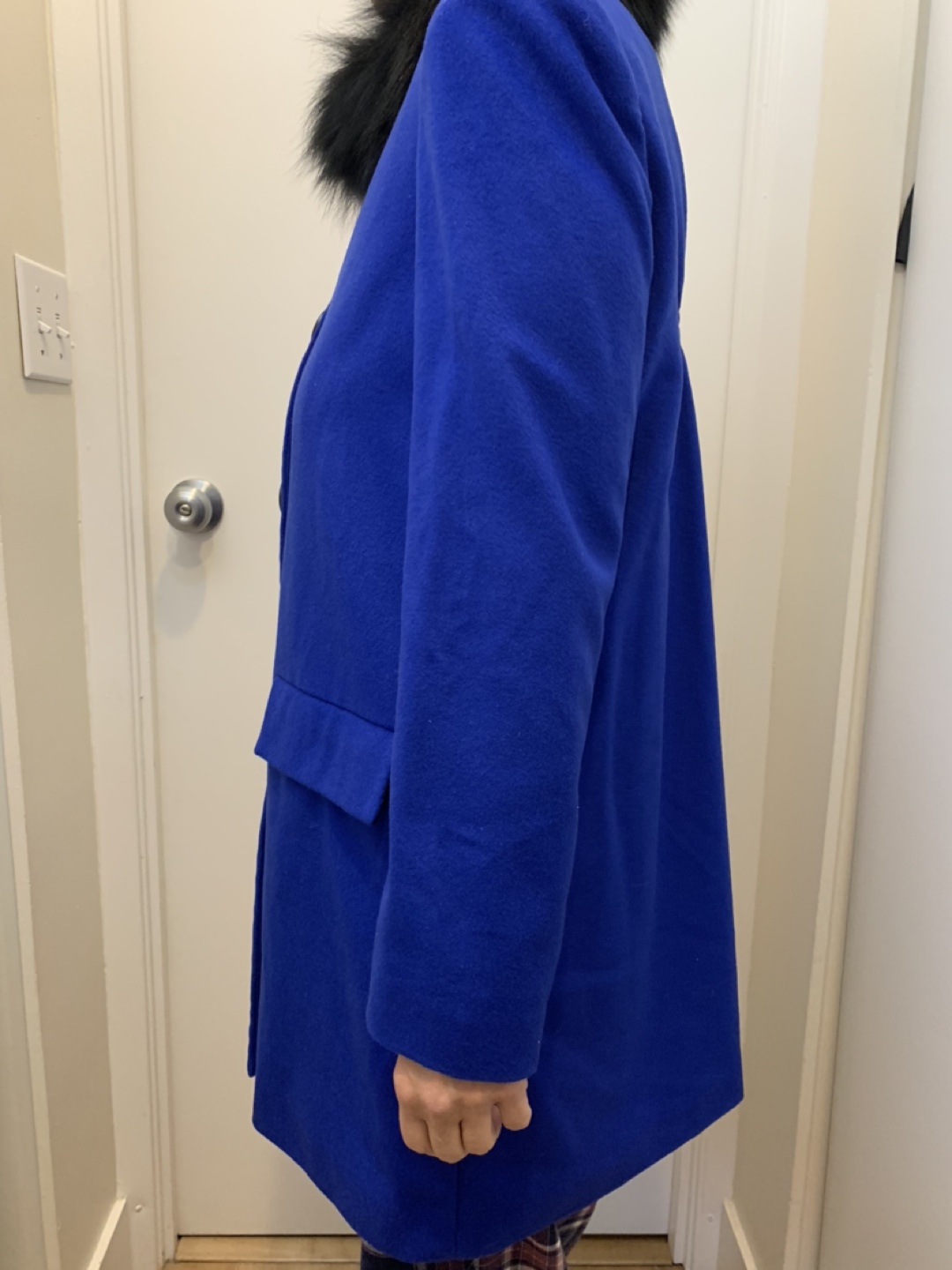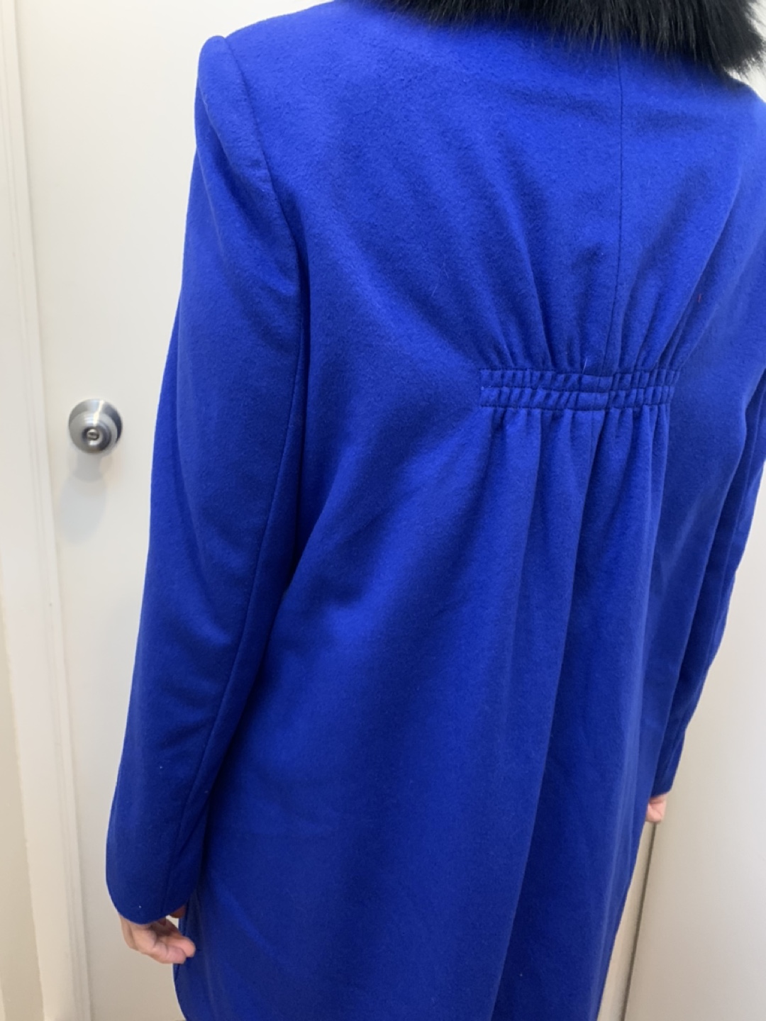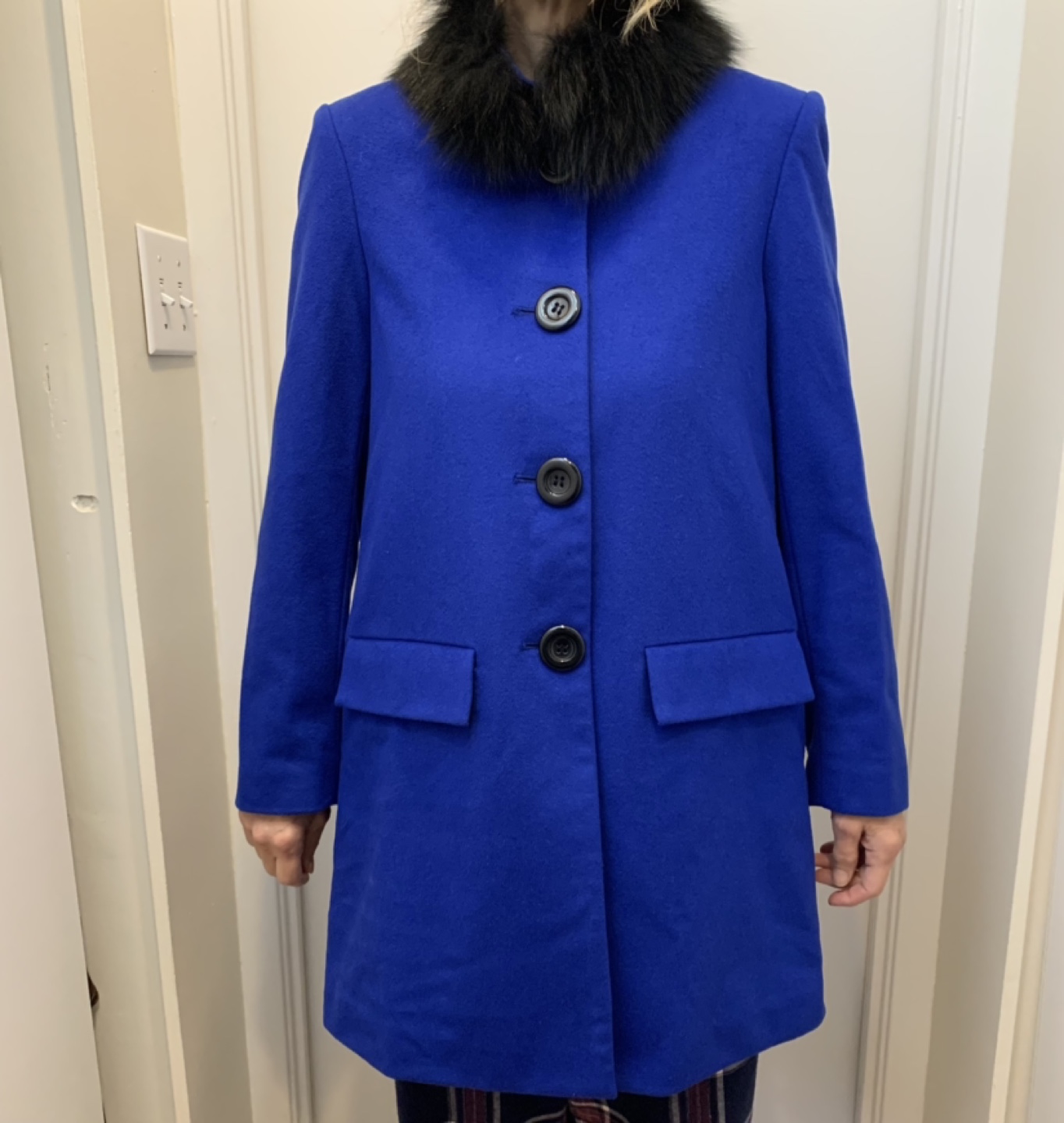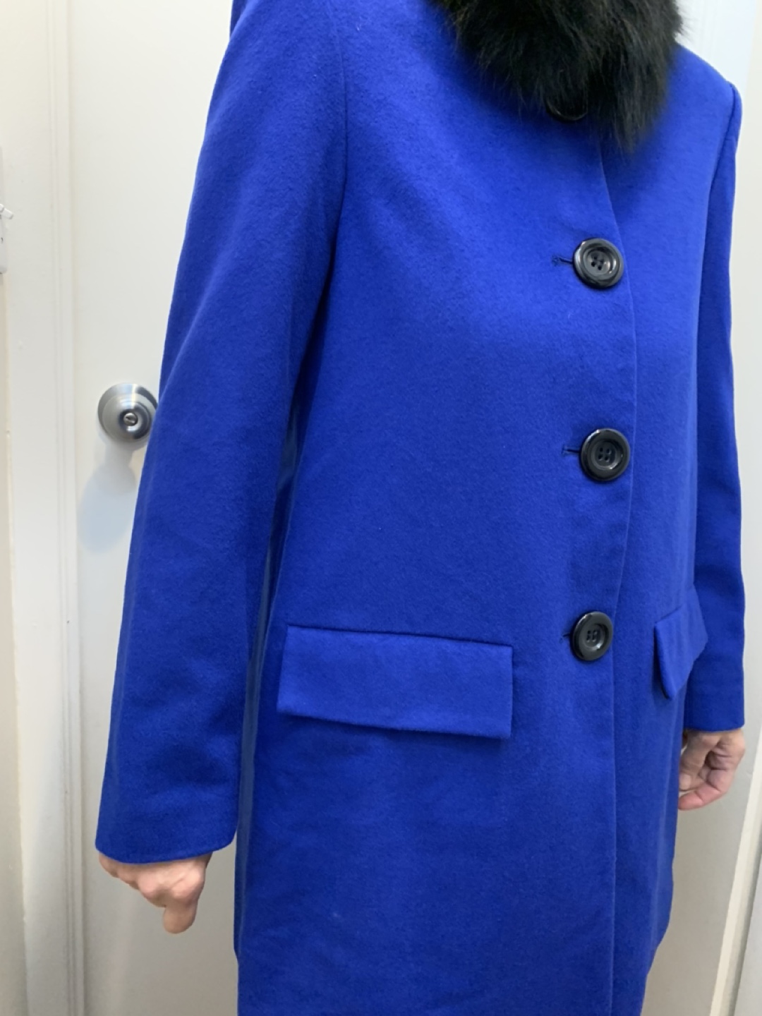 Selling a stylish blue wool coat with detachable a real fur collar! It features a classic button-up design and is perfect for keeping warm during the colder months. The coat is in great condition and ready for a new home!
