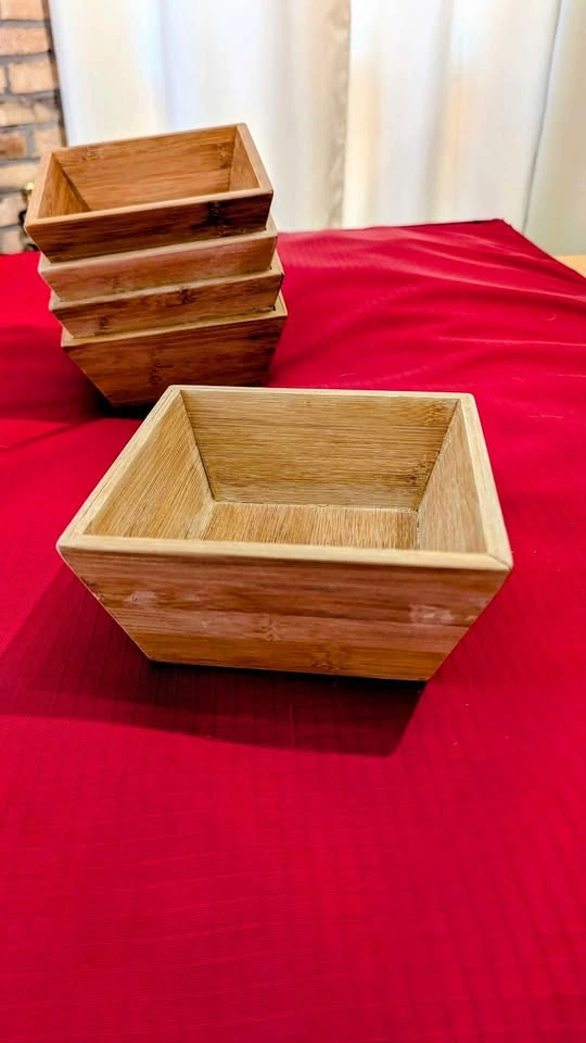 14Each bowl is 6.25" square and 2.75" high. Light color, so it goes with any decor, or stain/decoupage them to fit your style. Pickup Scarborough, Morningside and Old Finch.