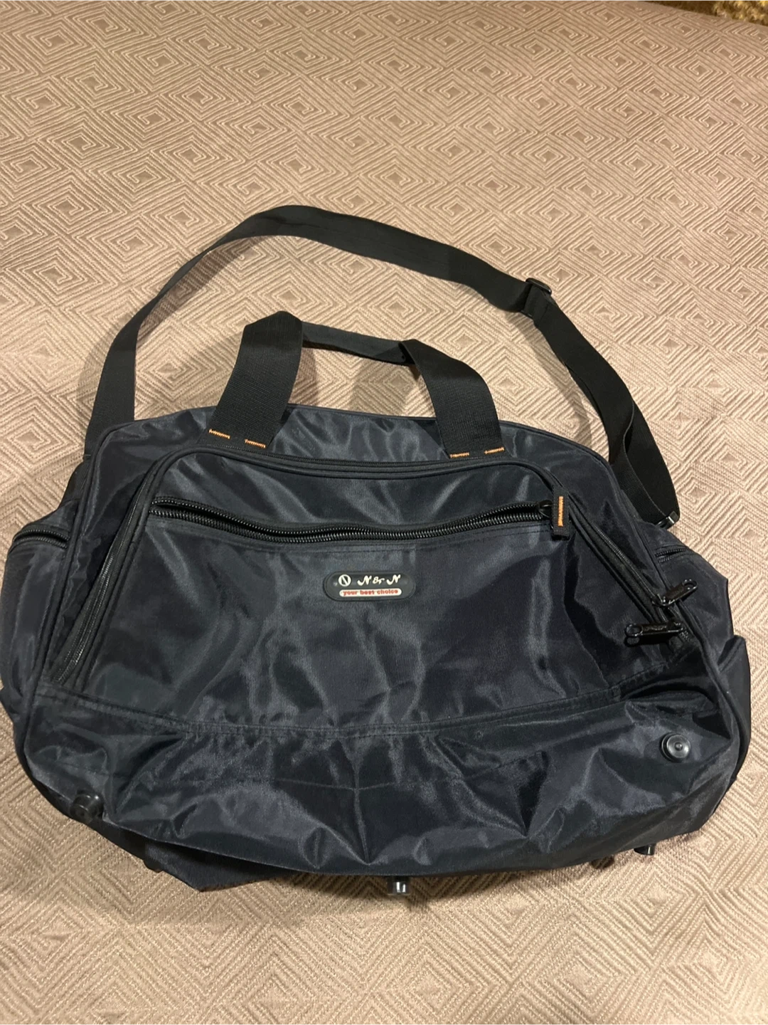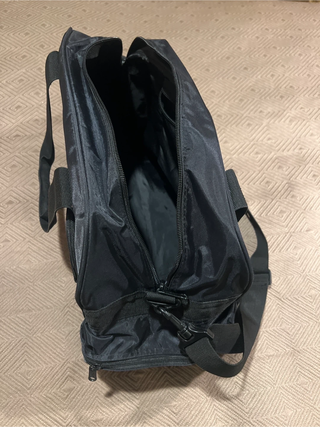 Black N & N travel duffel bag in good condition. It has a shoulder strap and multiple compartments for easy organization. Perfect for travel or gym use