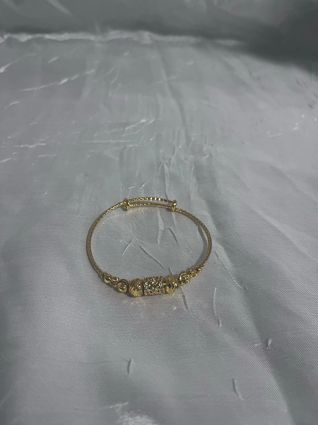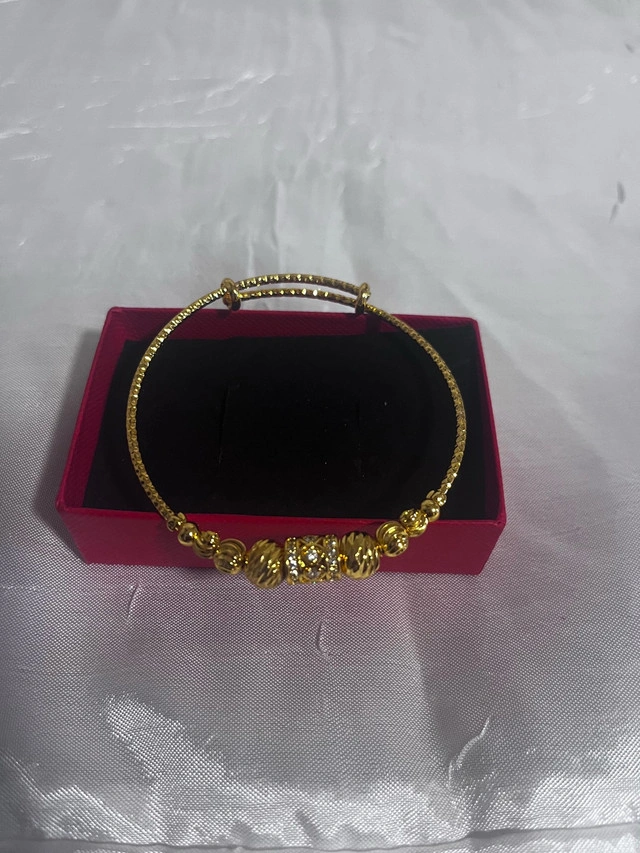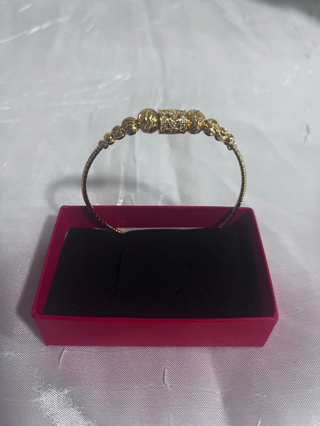This is a beautiful used bangle plated with 18k gold, perfect for adding a touch of elegance to any outfit. The intricate design and high-quality plating make it a standout piece.