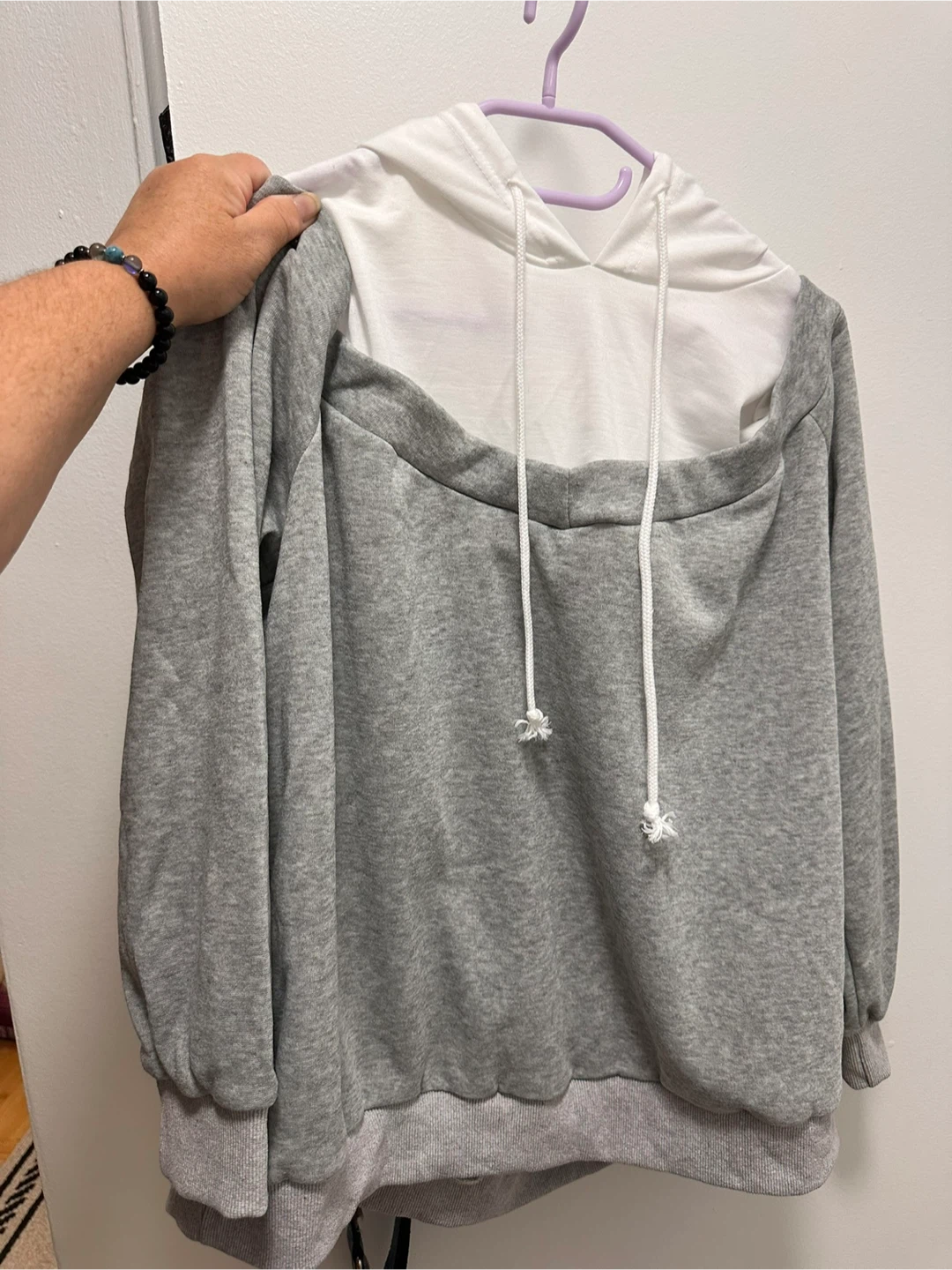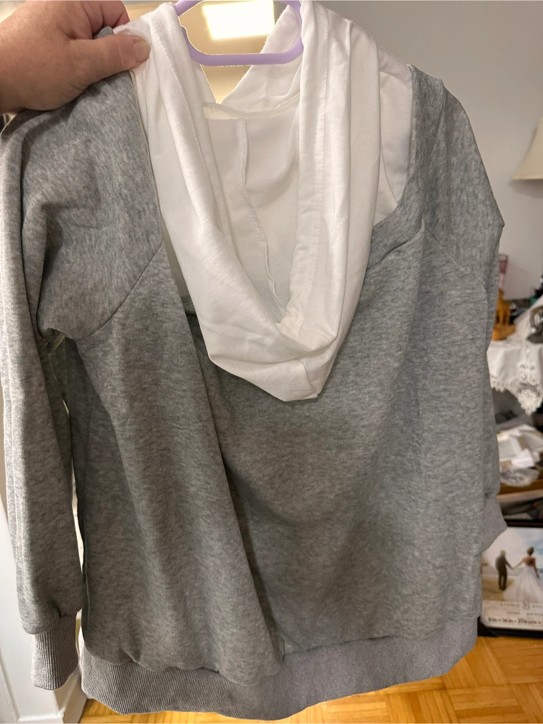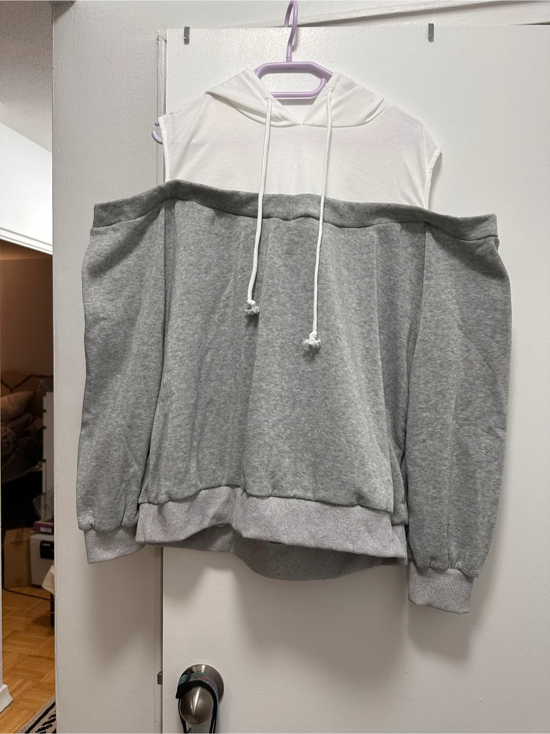 Selling a grey and white cute sweatshirt. It’s new and ready for a new home. Perfect for those cooler days withe a pair of jeans or just lounging around the house in a pair of sweats