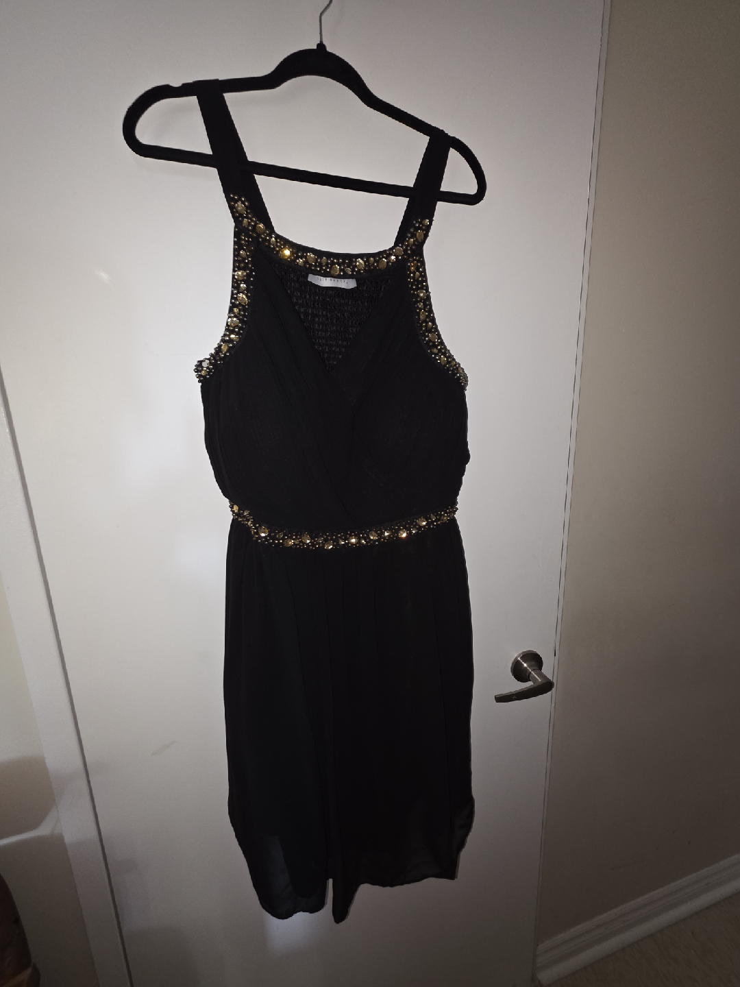 Selling a stylish black dress featuring beautiful gold embellishments around the neckline and waist. It's in great condition and ready for a new home! Suzy shiver. Pickup is near High Park Station. If it's up it's available. Just arrange pickup. More listings up.