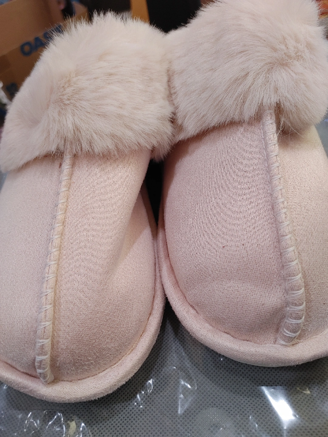 ❤️FURRY, PLUSH AND COMFY SLIPPERS ❤️BRAND NEW. ❤️FITS WOMENS SIZE 6 - 7 👉🏻(EUROPEAN 40/41) ON THE SOLE BUT I DON'T AGREE THAT ITS A WOMENS SIZE 9 ❤️IT HAS A PINKISH HUE TO IT. ❤️I AM LOCATED IN THE YONGE AND STEELES AREA FOR PICKUP.