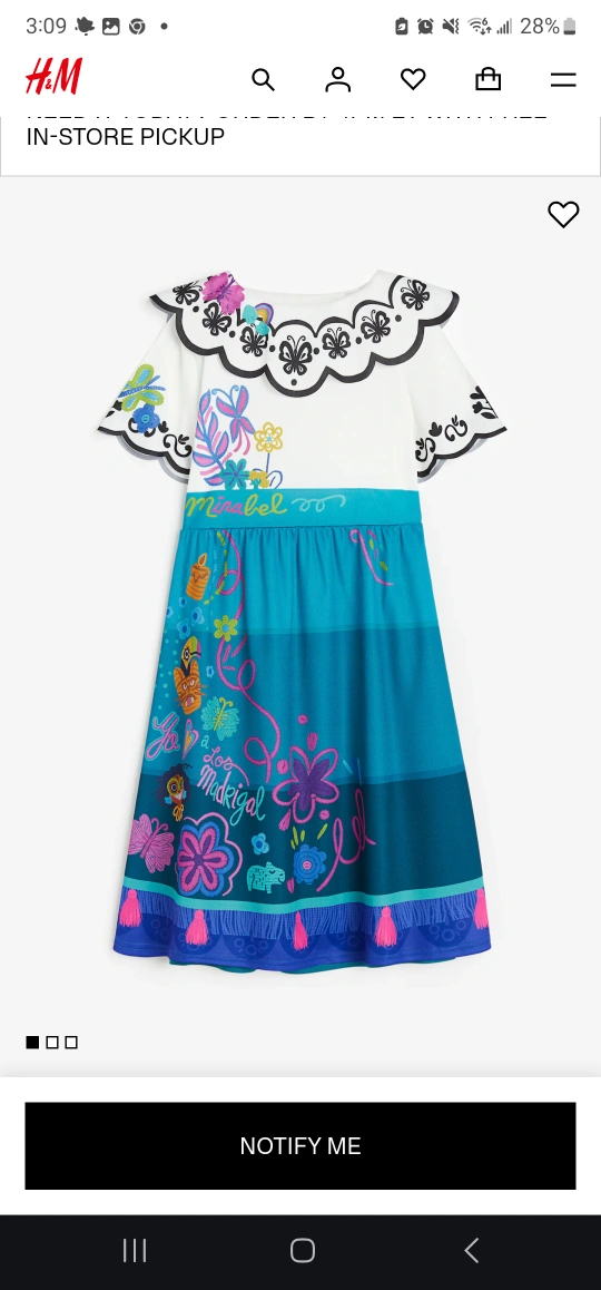 Selling a cute H&M girls' dress featuring a Mirabel Encanto design! It's in size 8-10 (US). The dress has a colourful and vibrant print, perfect for any Encanto fan